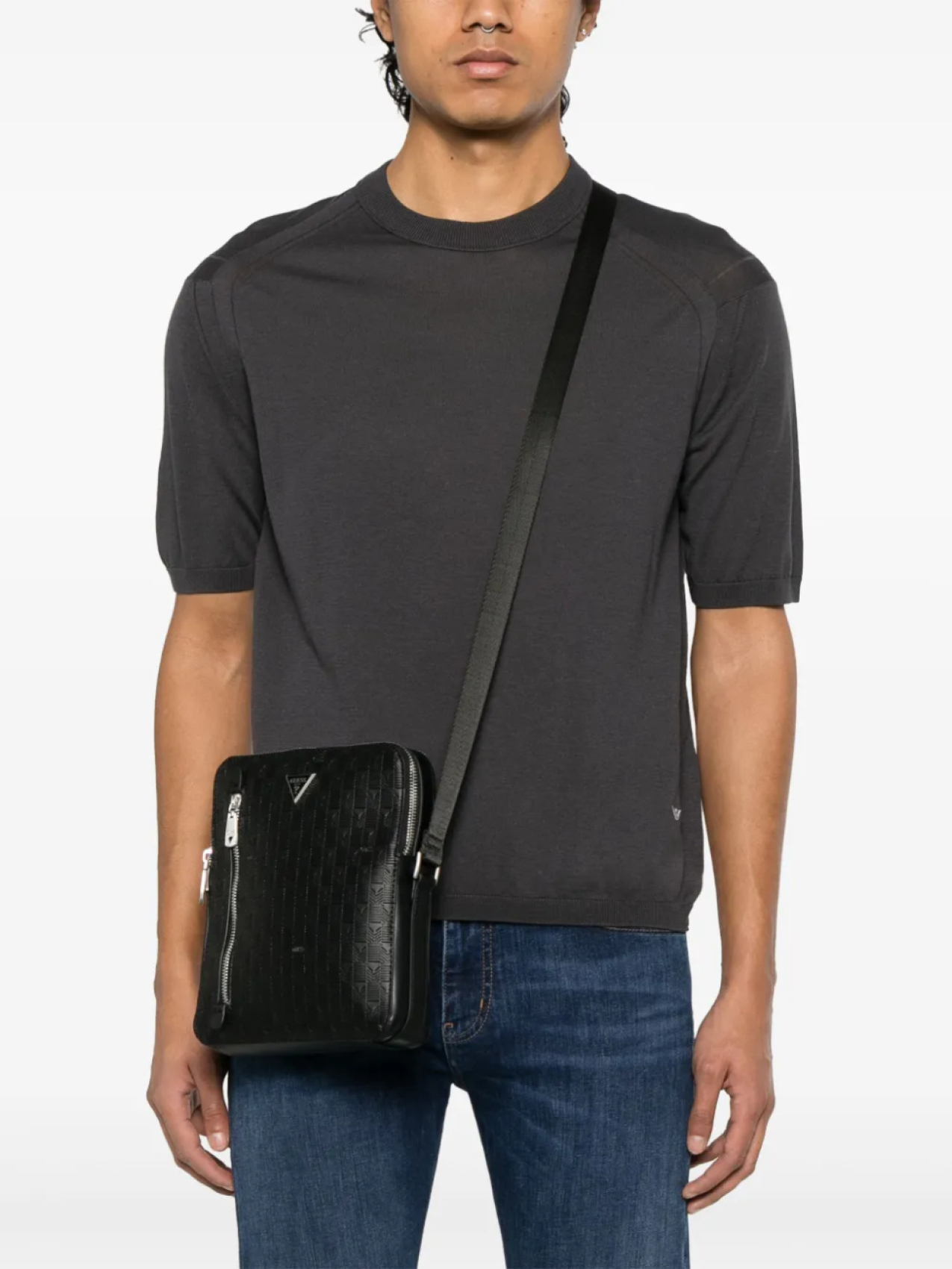 Сумка-мессенджер с логотипом GUESS USA, черный