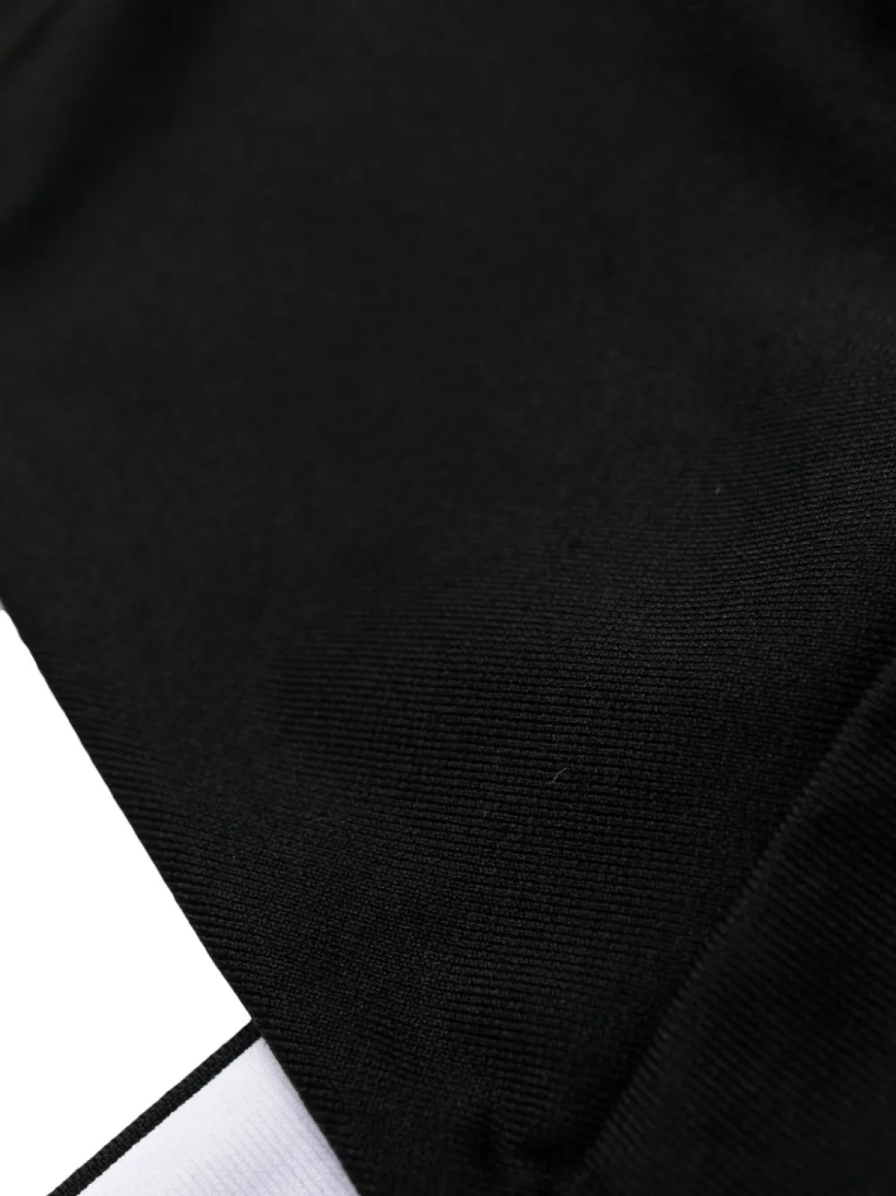 Черный/белый, эластичный материал, нашивка с логотипом сзади, вырез-петля халтер, застежка на завязке сзади и модель из двух частей. Пожалуйста, примеряйте купальники и пляжные шорты только поверх собственного белья.