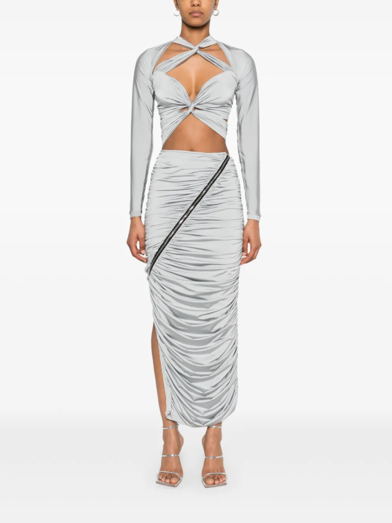 Длинное платье с вырезами и драпировкой MITILIANE COUTURE, серый
