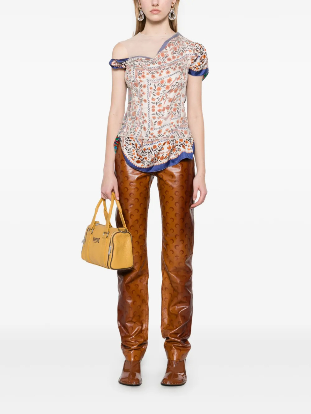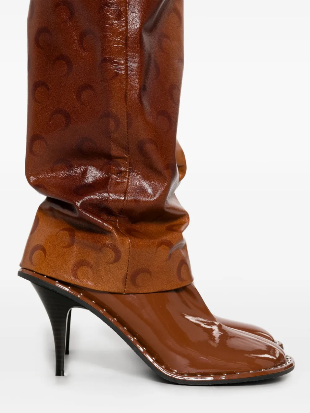 Кожаные брюки с лунным принтом Marine Serre, коричневый