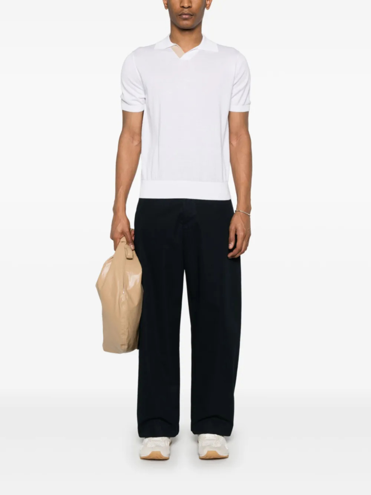 Рубашка поло с замшевой вставкой Canali, белый