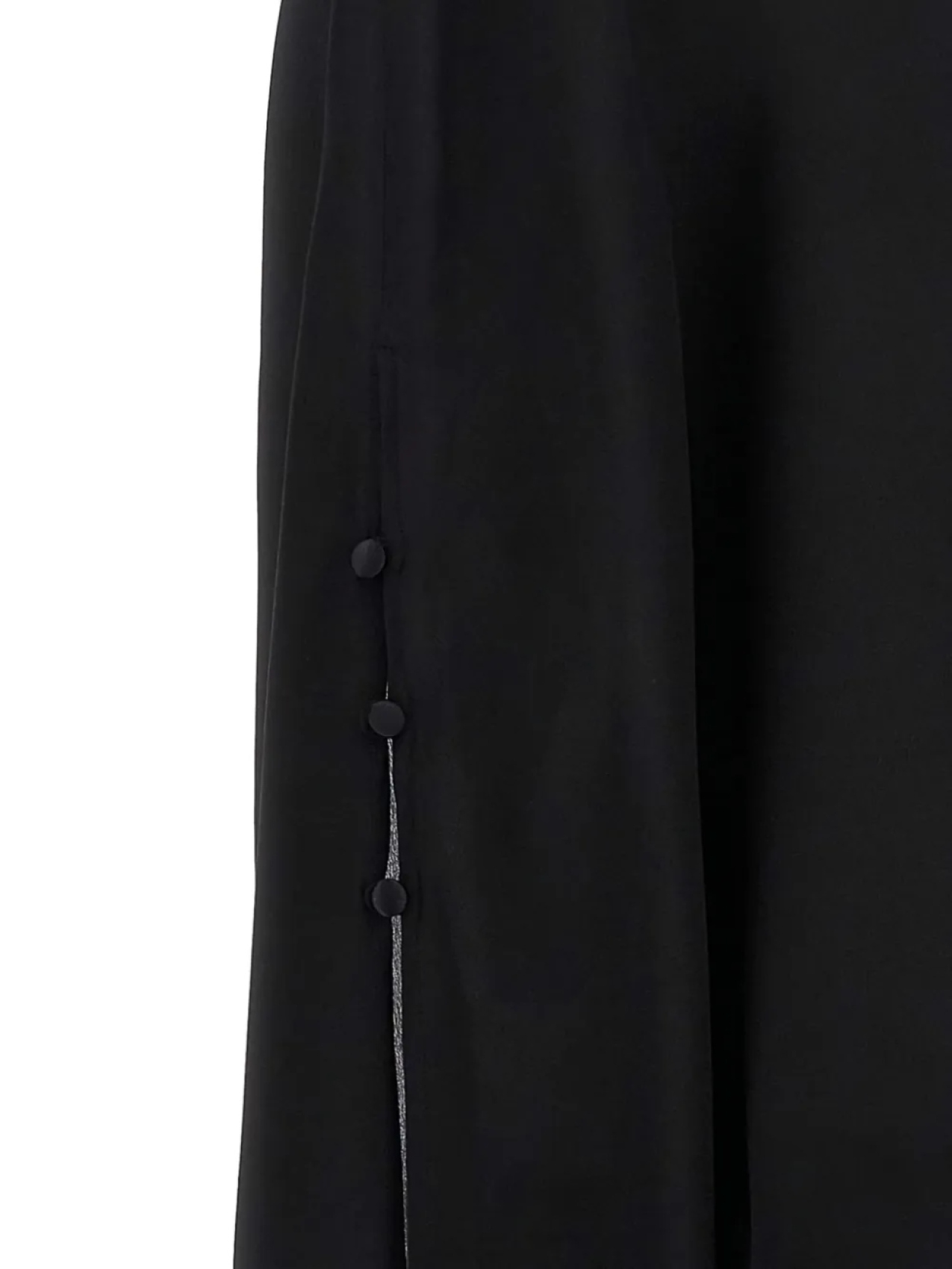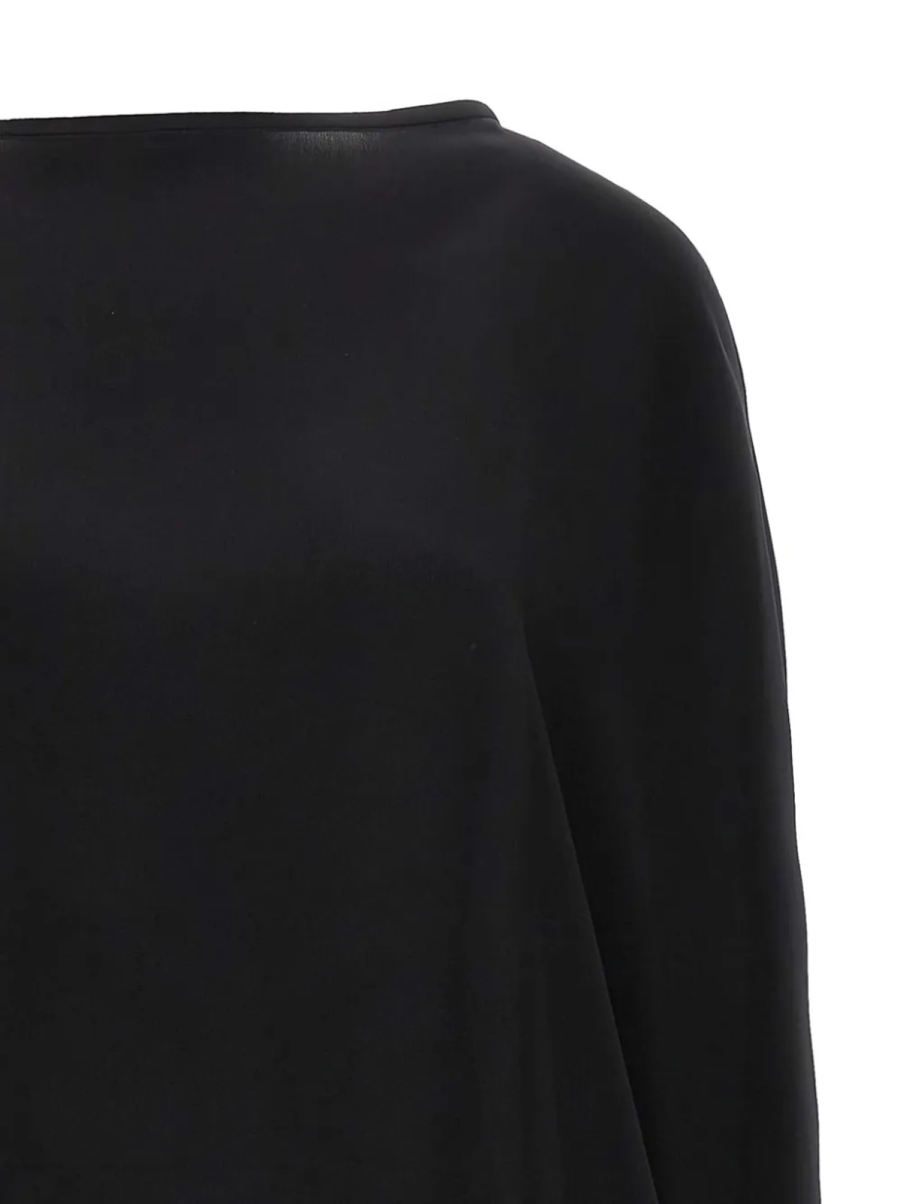 Черный вырез лодочкой, рукава «летучая мышь», декоративные пуговицы