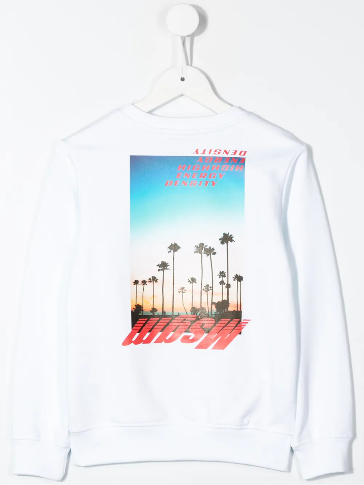 Толстовка с графичным принтом от MSGM Kids. Узор сзади, заплатка с логотипом спереди, круглый вырез под горло, длинные рукава, узкие манжеты и закругленный подол.