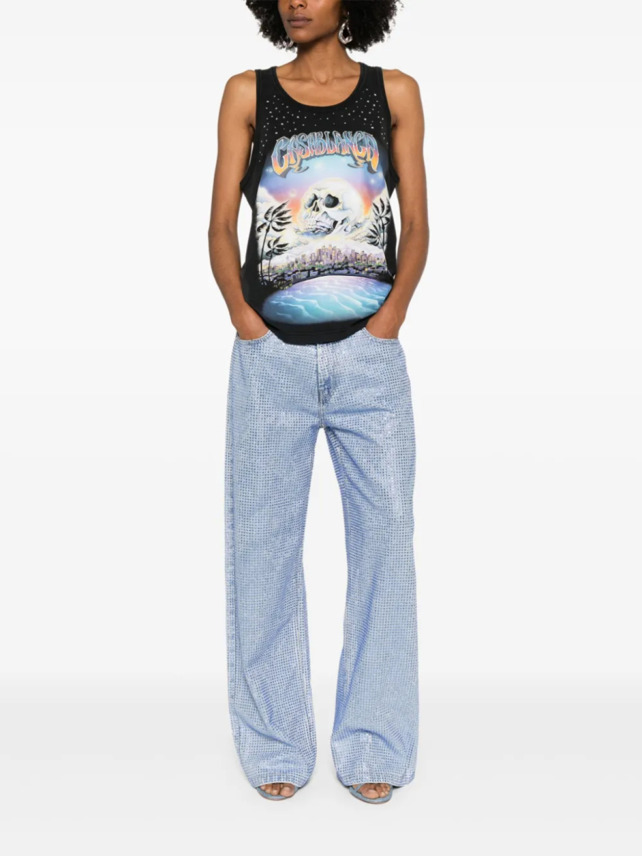 Джинсы, украшенные кристаллами Casablanca, синий