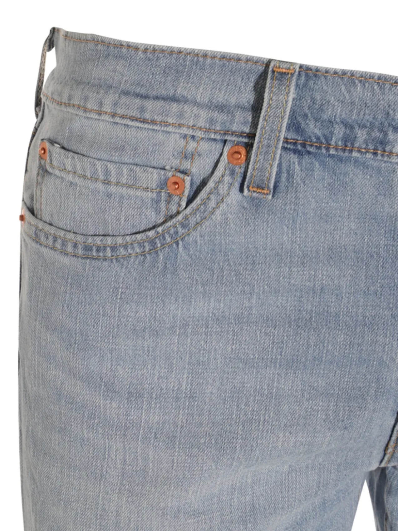 Светло-голубая потайная застежка на пуговицы, шлевки для ремня, классические пять карманов, аппликация с логотипом