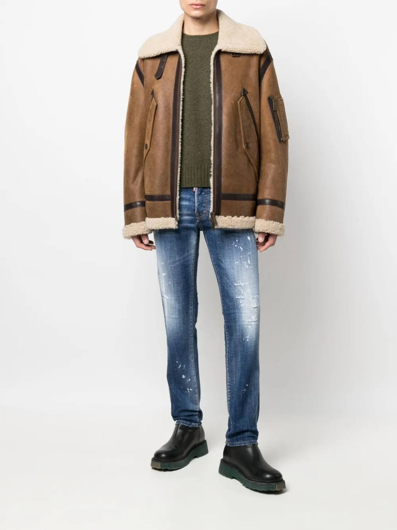 DSQUARED2 куртка со вставками из овчины, коричневый