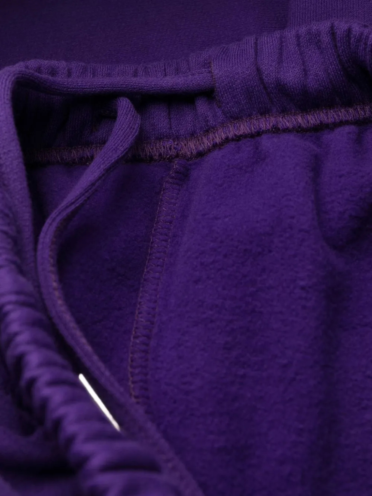 Фиолетовый, хлопок, декор с надписью Icon, принт с логотипом, эластичный пояс, два прорезных кармана по бокам, прямой крой и эластичные манжеты.