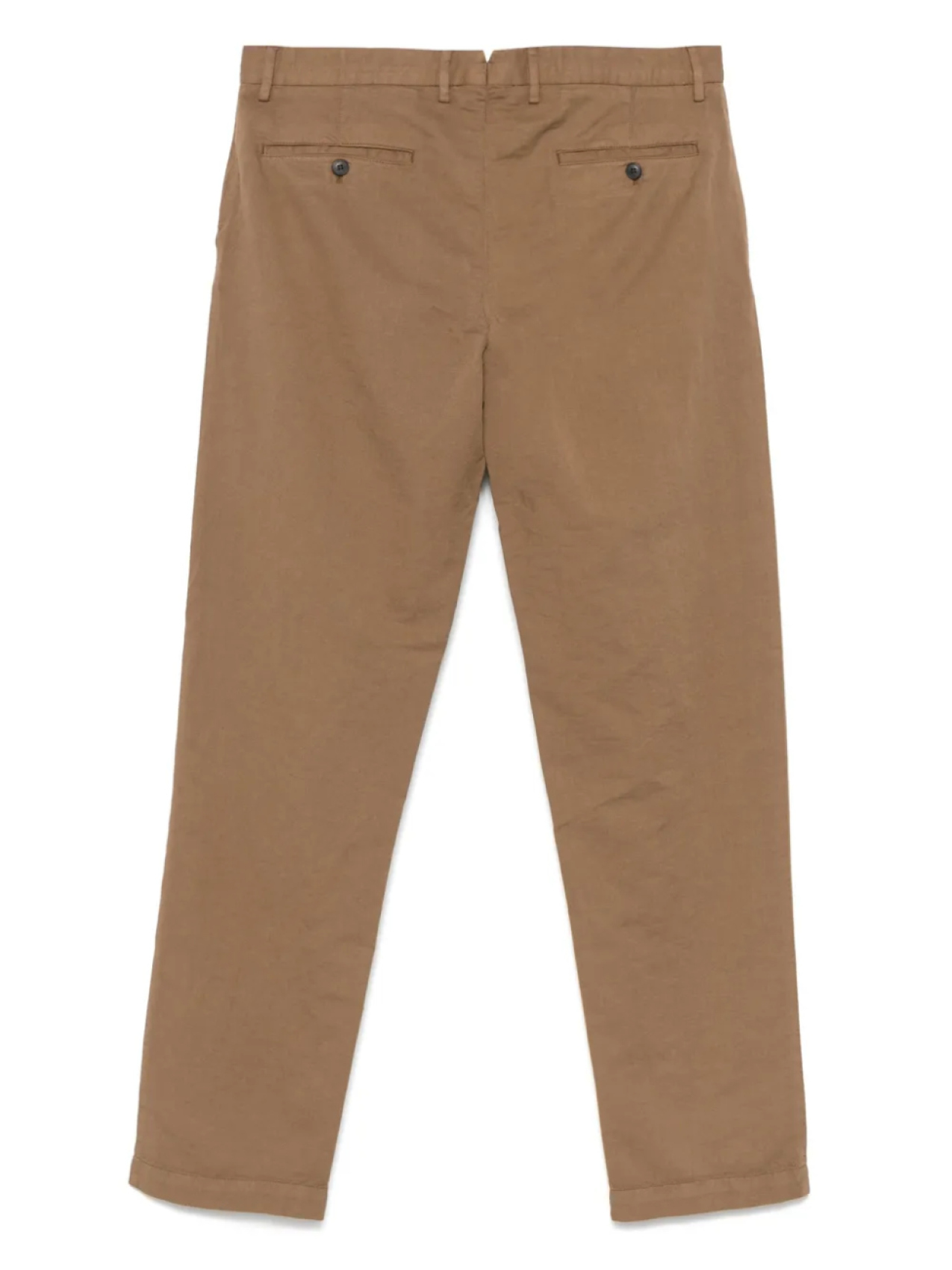 Потайная застежка на пуговицы цвета верблюжьей шерсти, шлевки для ремня, два диагональных кармана по бокам, два прорезных кармана сзади