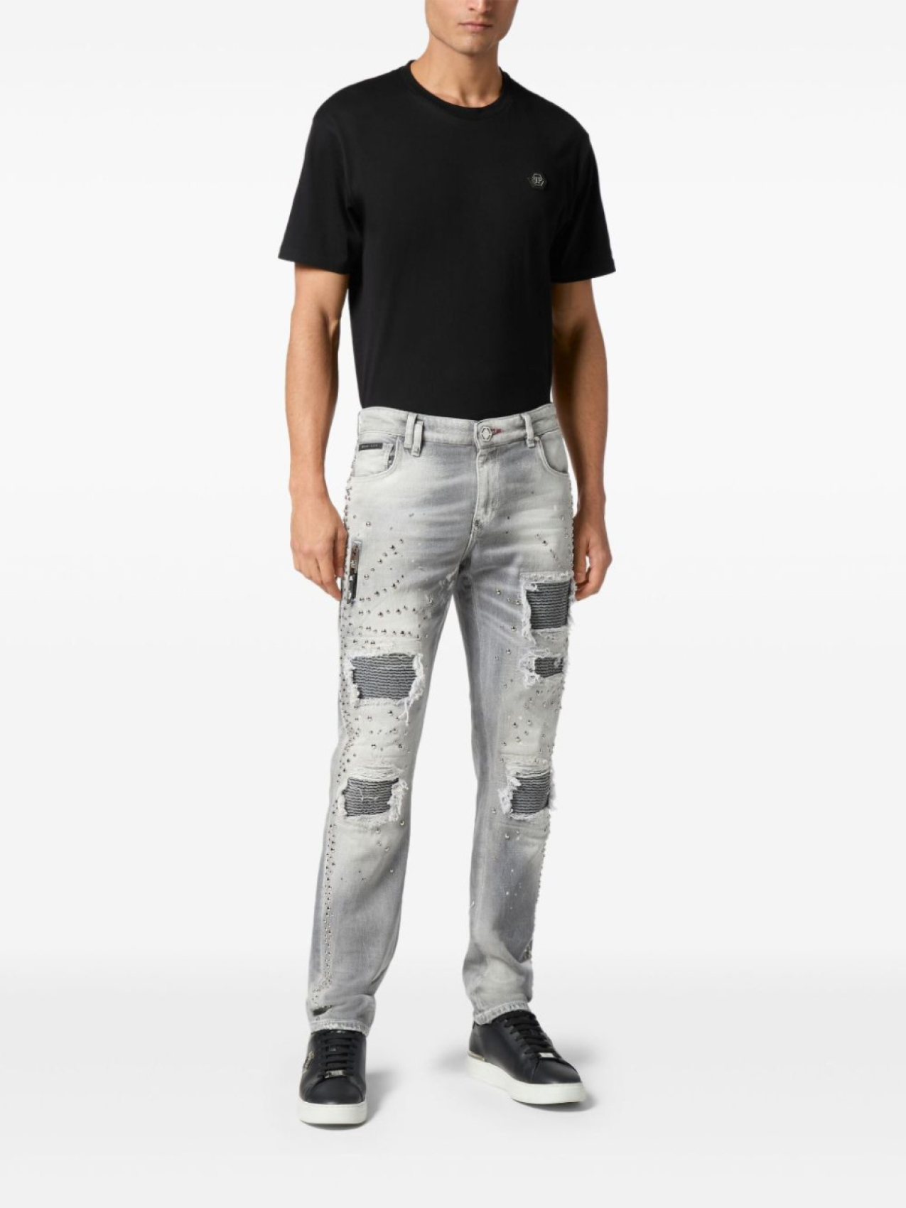 Джинсы с заклепками Philipp Plein, серый