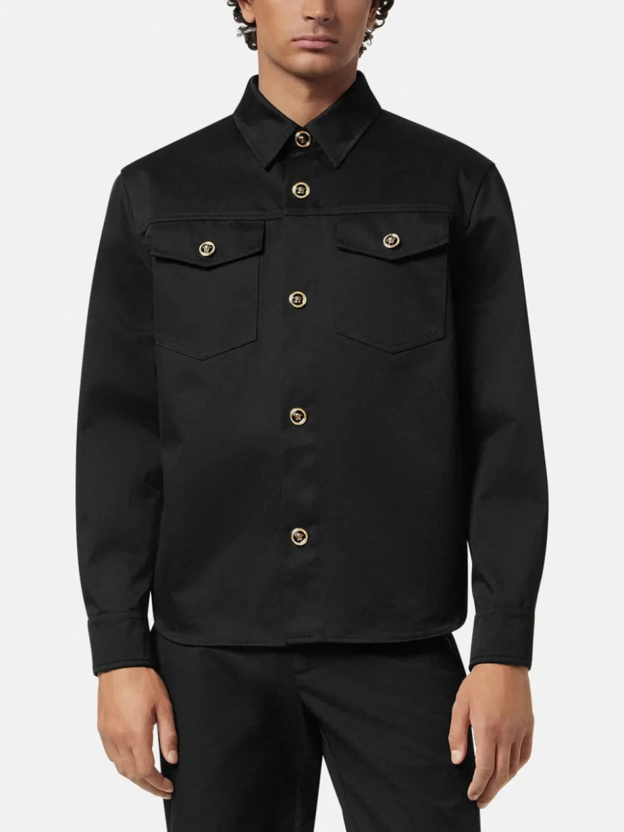 Хлопковая рубашка-пиджак Versace, черный 113 537₽