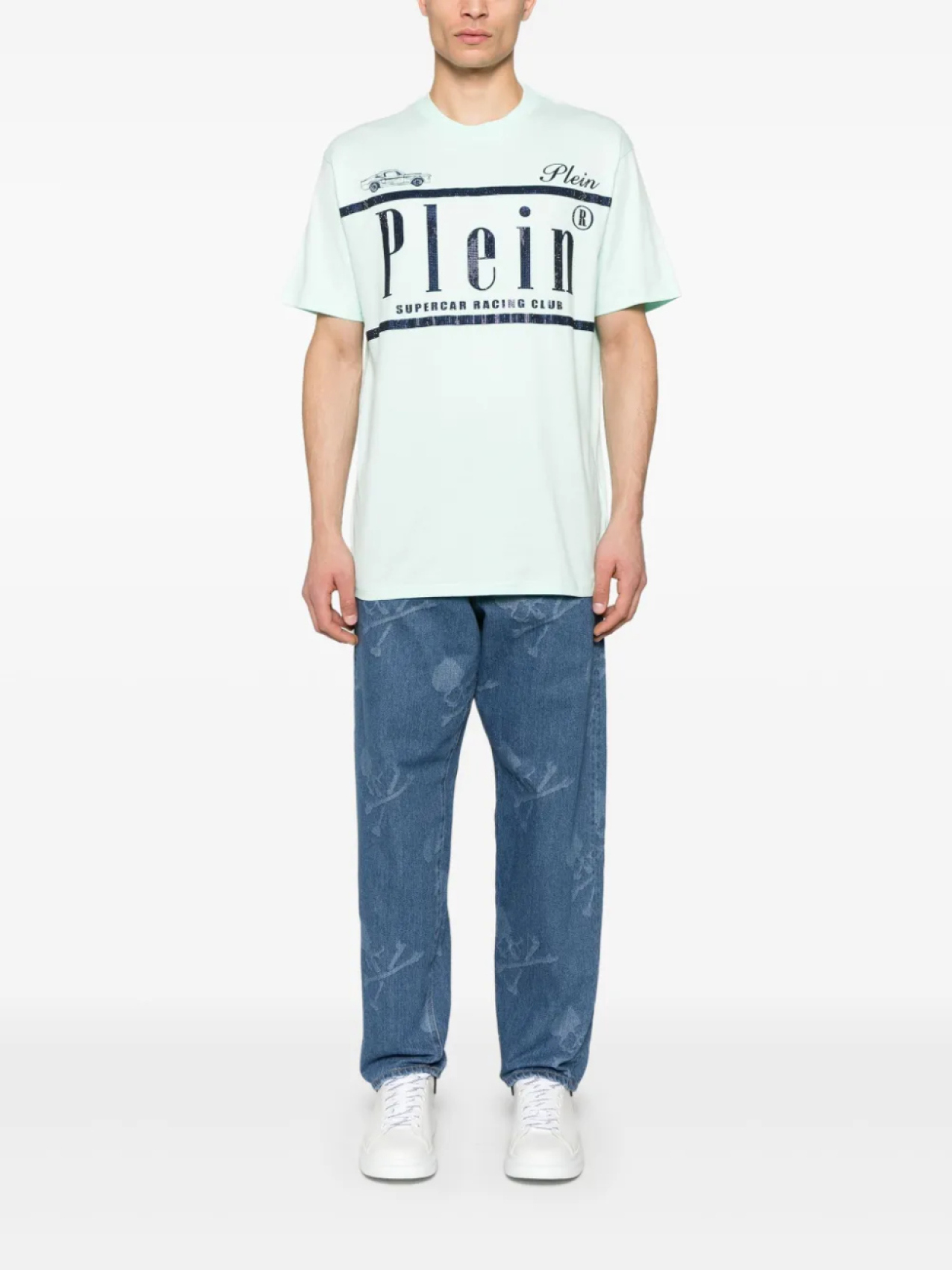 Футболка с логотипом и стразами Philipp Plein, зеленый