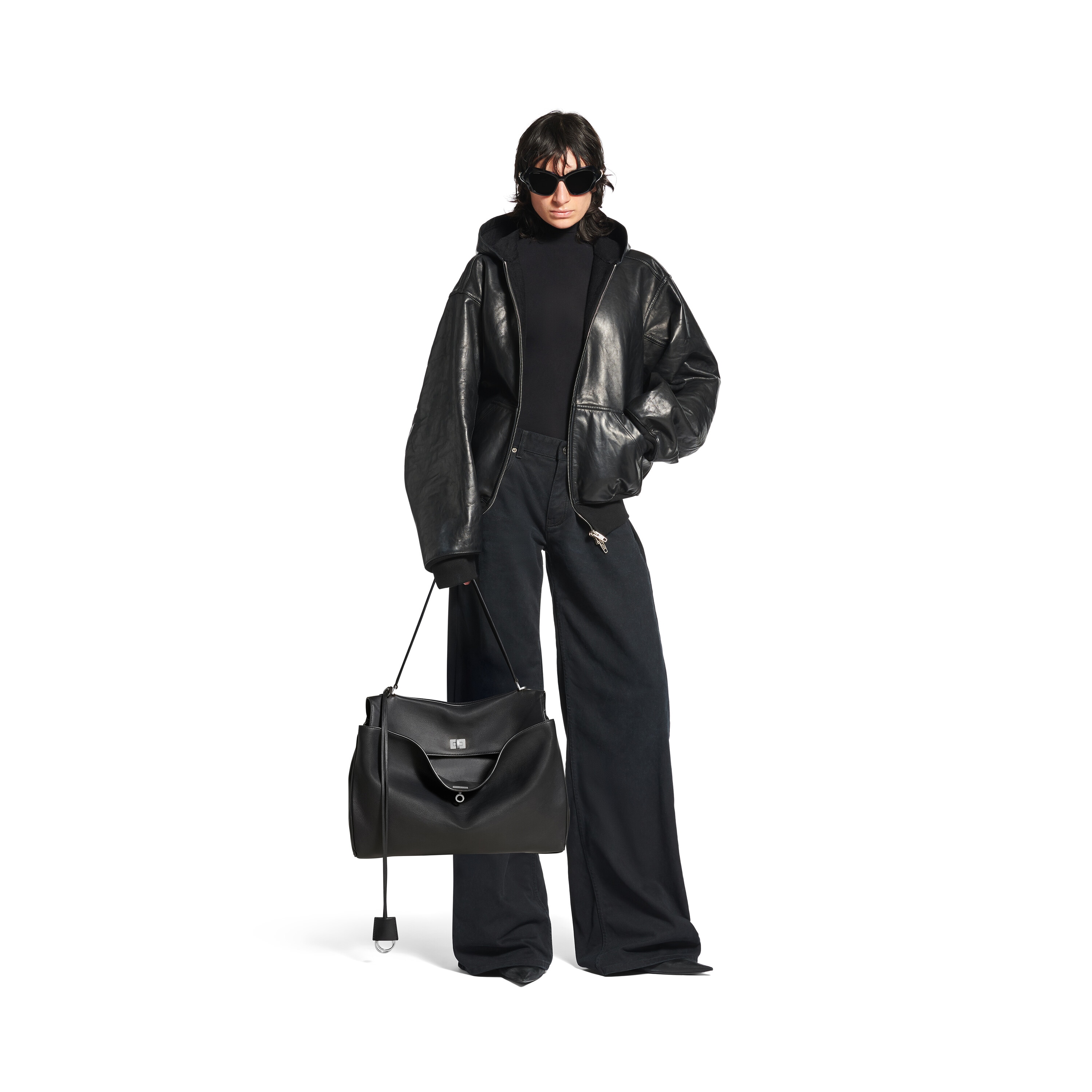Большая сумка Rodeo из черной гладкой телячьей кожи, фурнитура цвета состаренного серебра