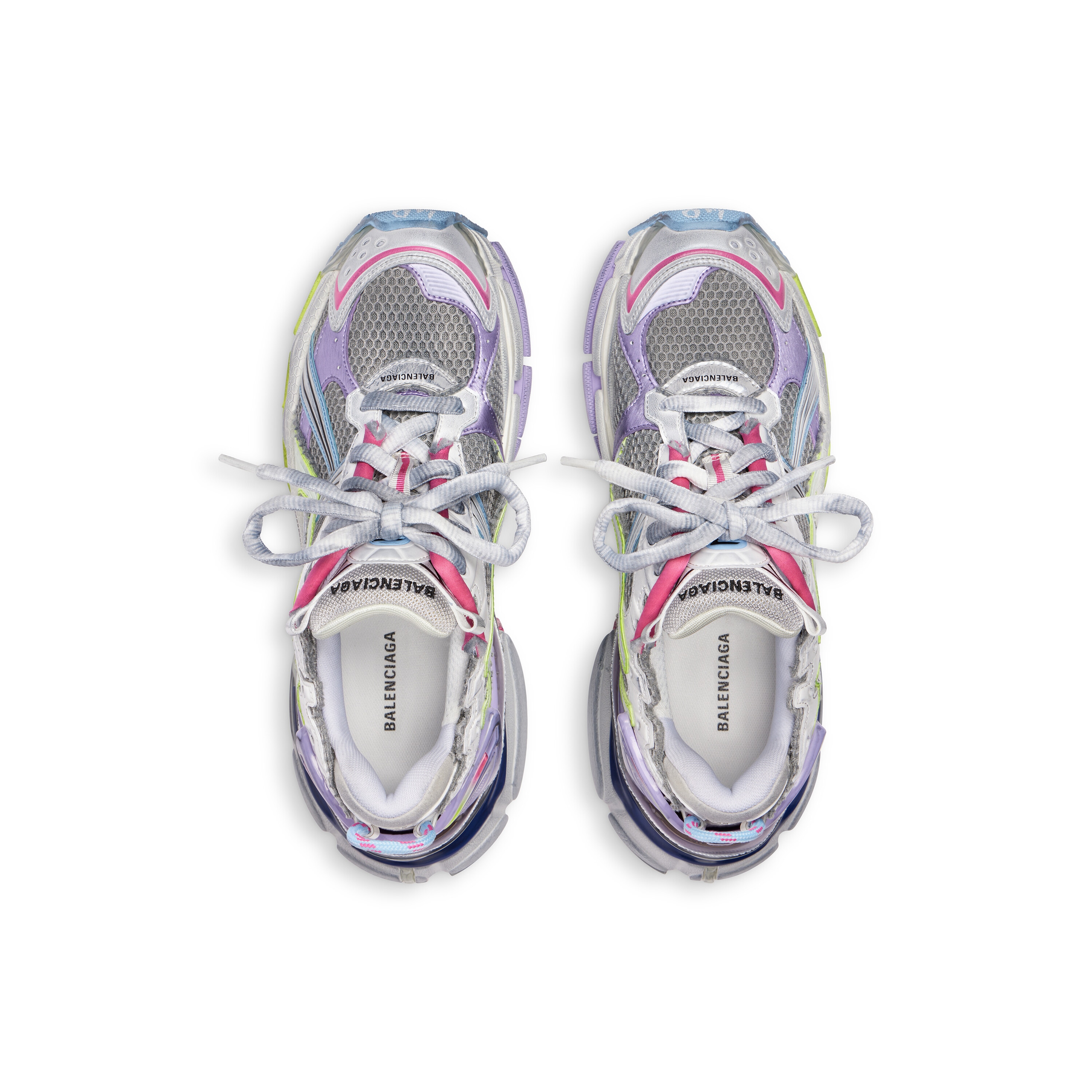 Кроссовки Runner серого, светло-фиолетового, неоново-желтого и белого цвета с сеткой и нейлоном