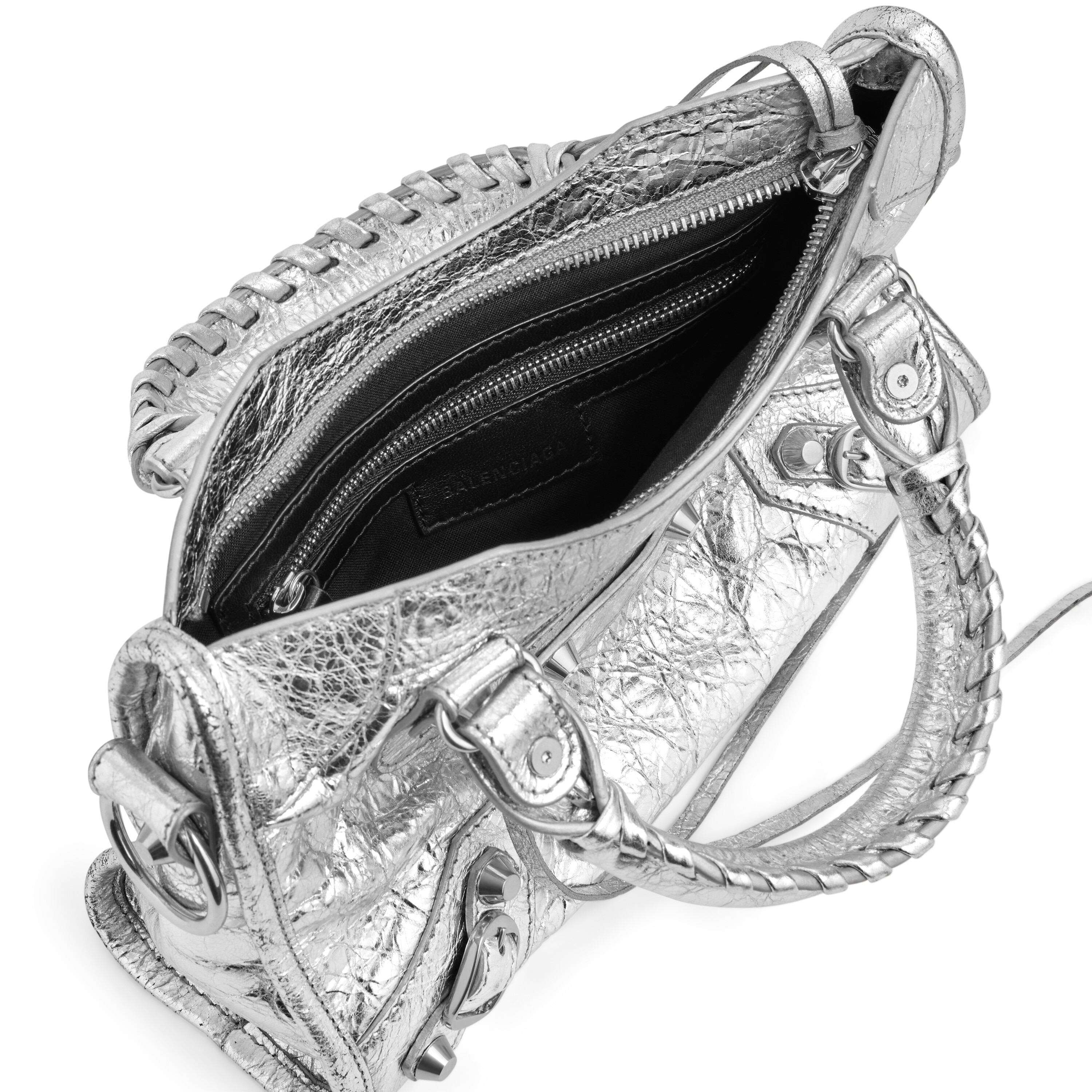 Сумка Le City Mini из серебристой металлизированной кожи ягненка Arena, блестящая серебристая фурнитура