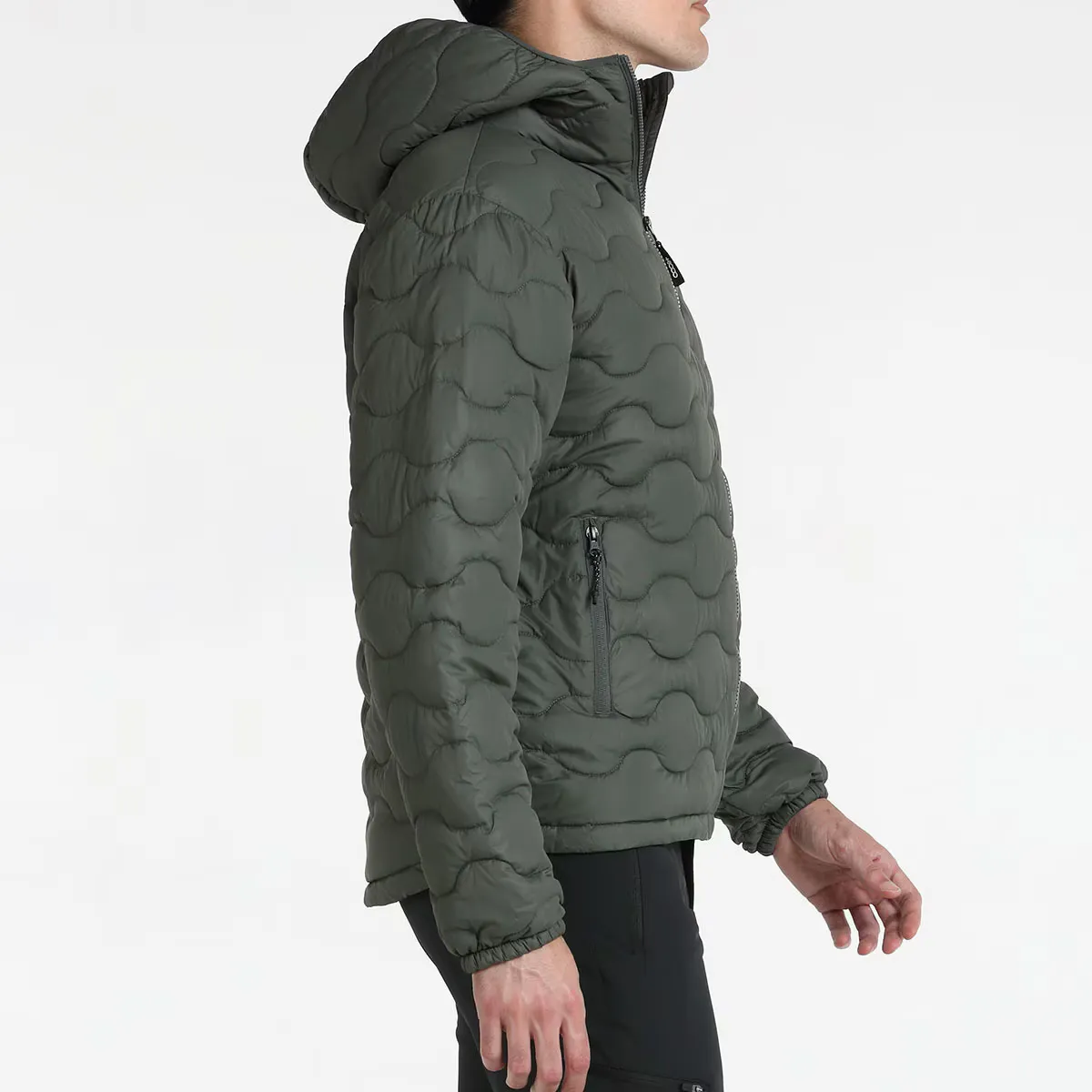 Ватник с узором волн, прошитым на полиэстеровой ткани и наполнителем сорона от Dupont. Регулируемый капюшон с эластичной окантовкой, карманы на молнии и эластичные манжеты. Резиновая этикетка с логотипом бренда.
