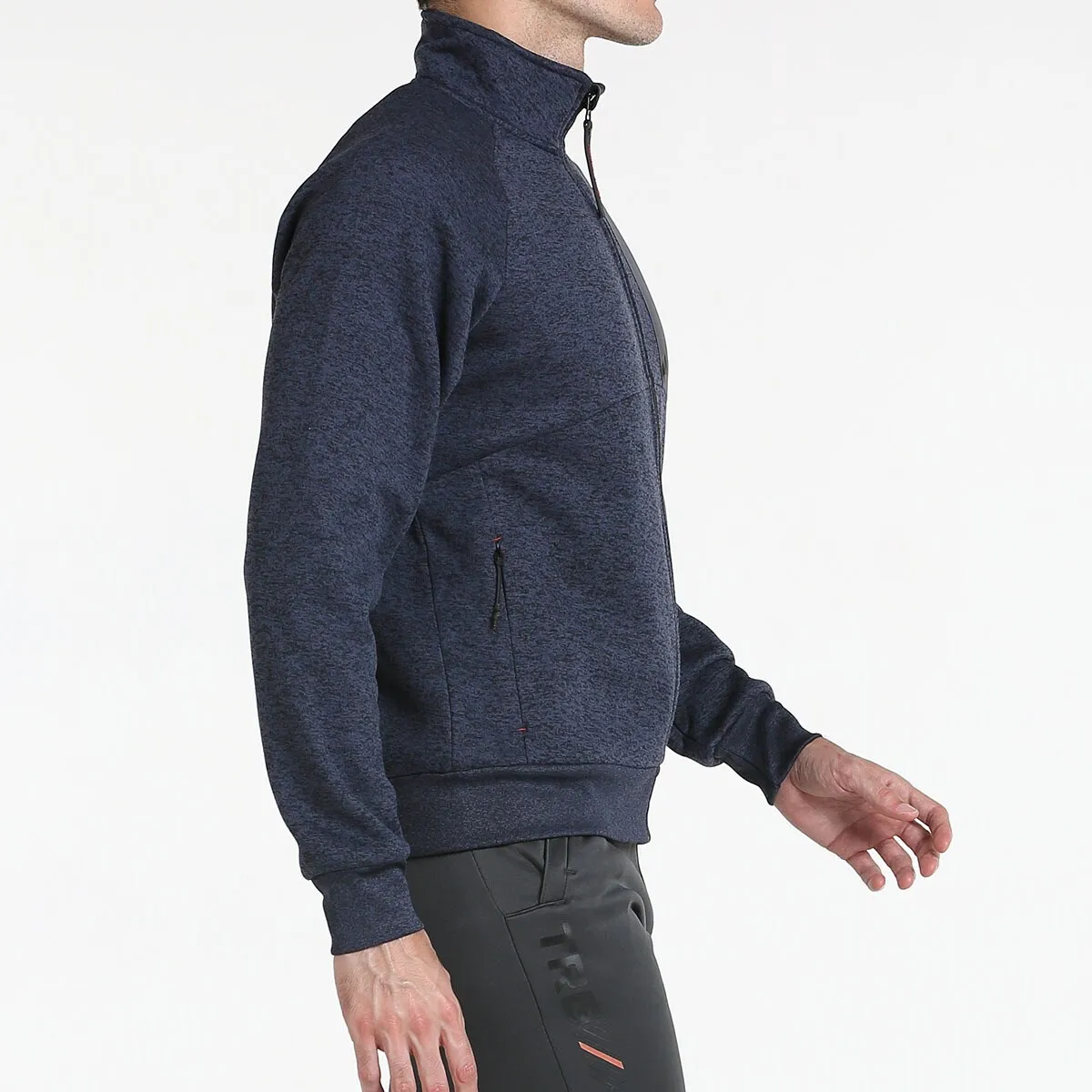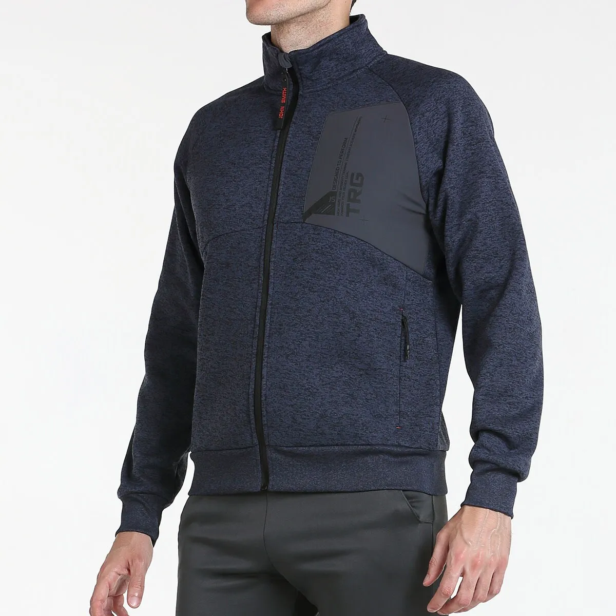 Открытый свитшот с контрастной биэластичной тканью, нагрудный карман с принтом, боковые карманы на молнии, рубчик по подолу, принт на спине