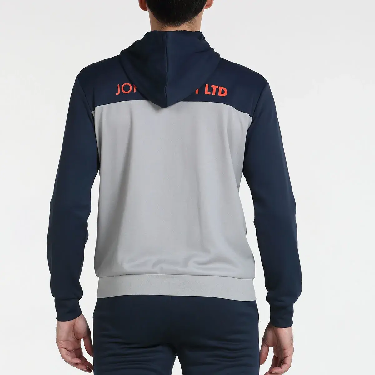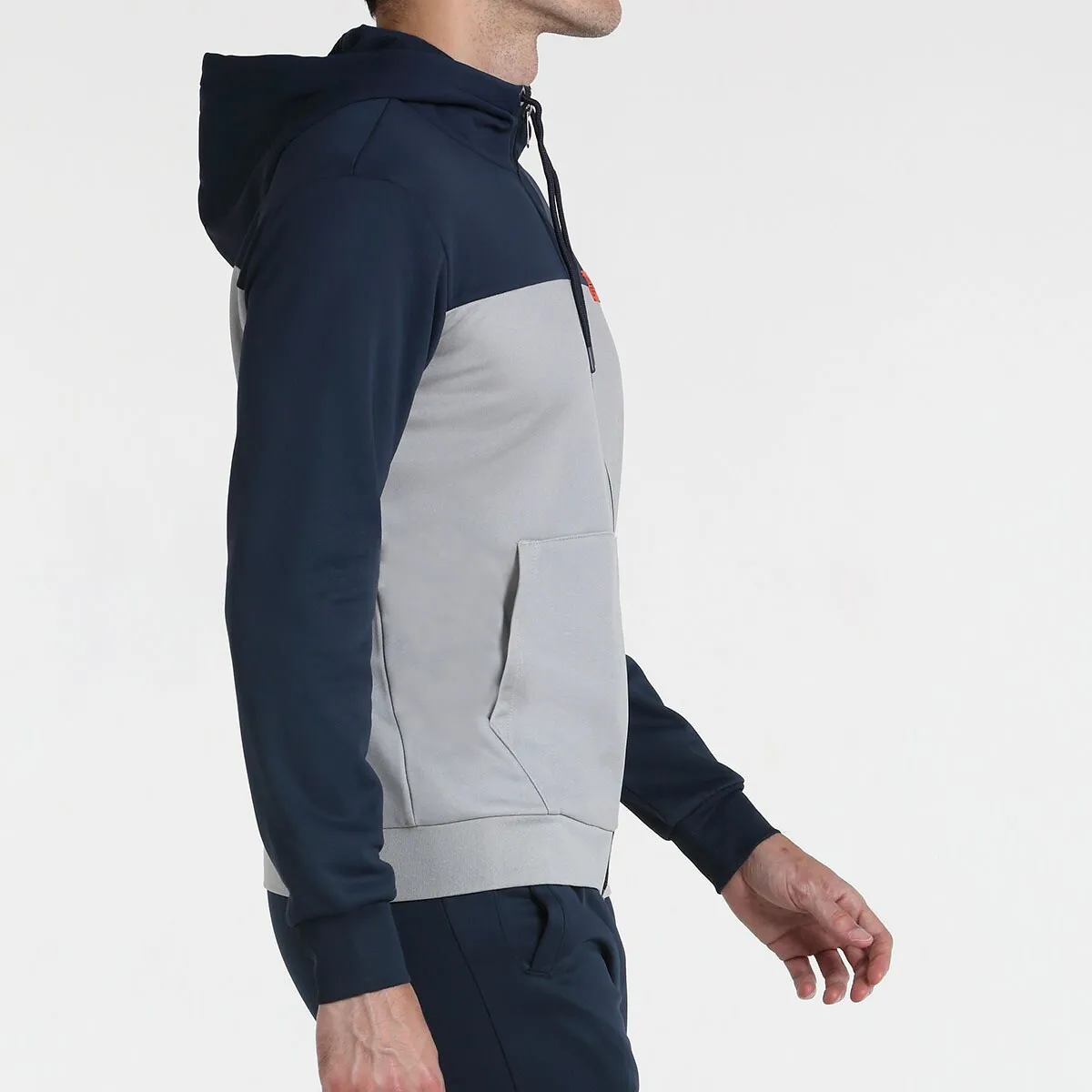 Толстовка из полиэстера с капюшоном и карманом в виде кенгуру, открытой молнией, контрастными деталями спереди, сзади и капюшоном, лентой внутри капюшона и декоративной этикеткой.