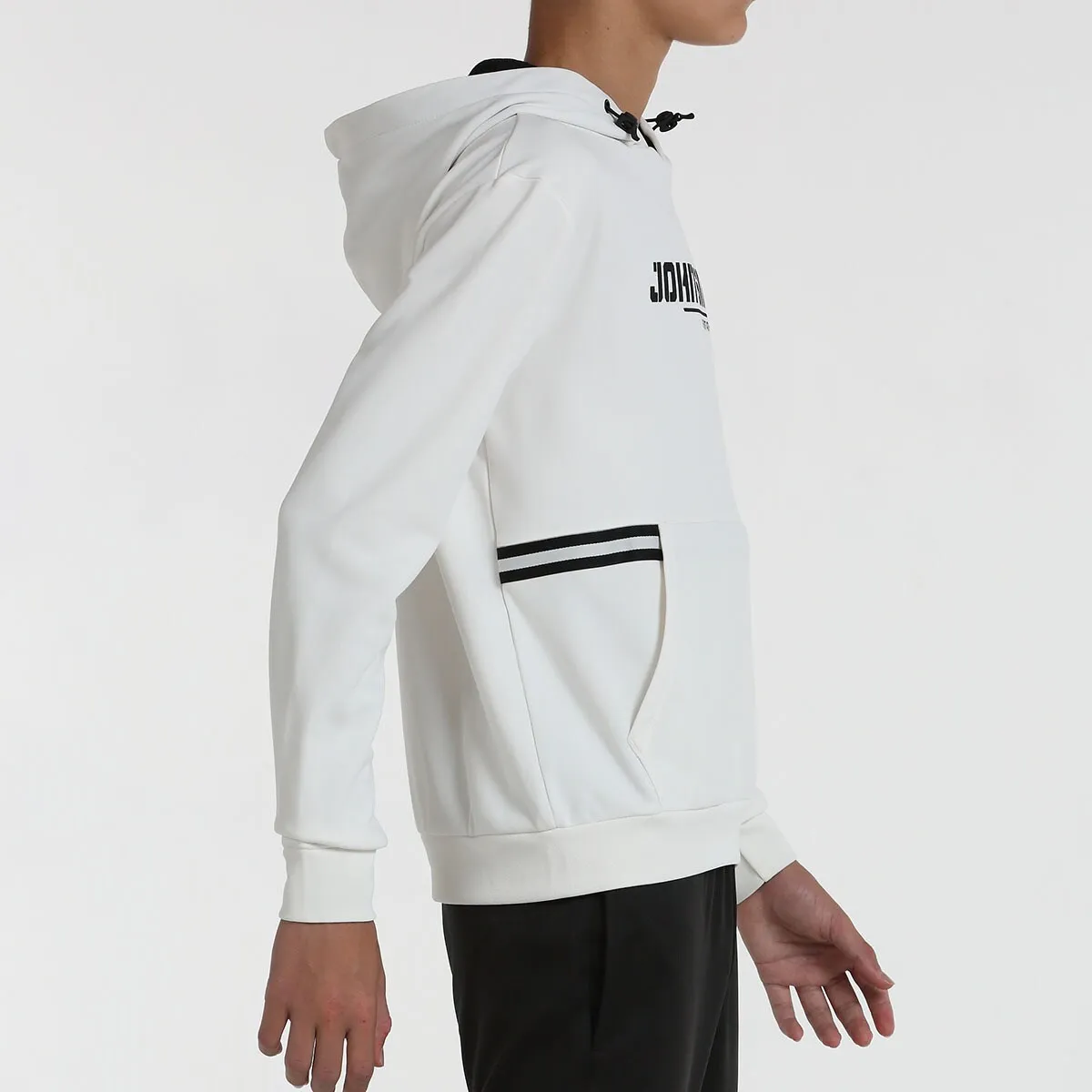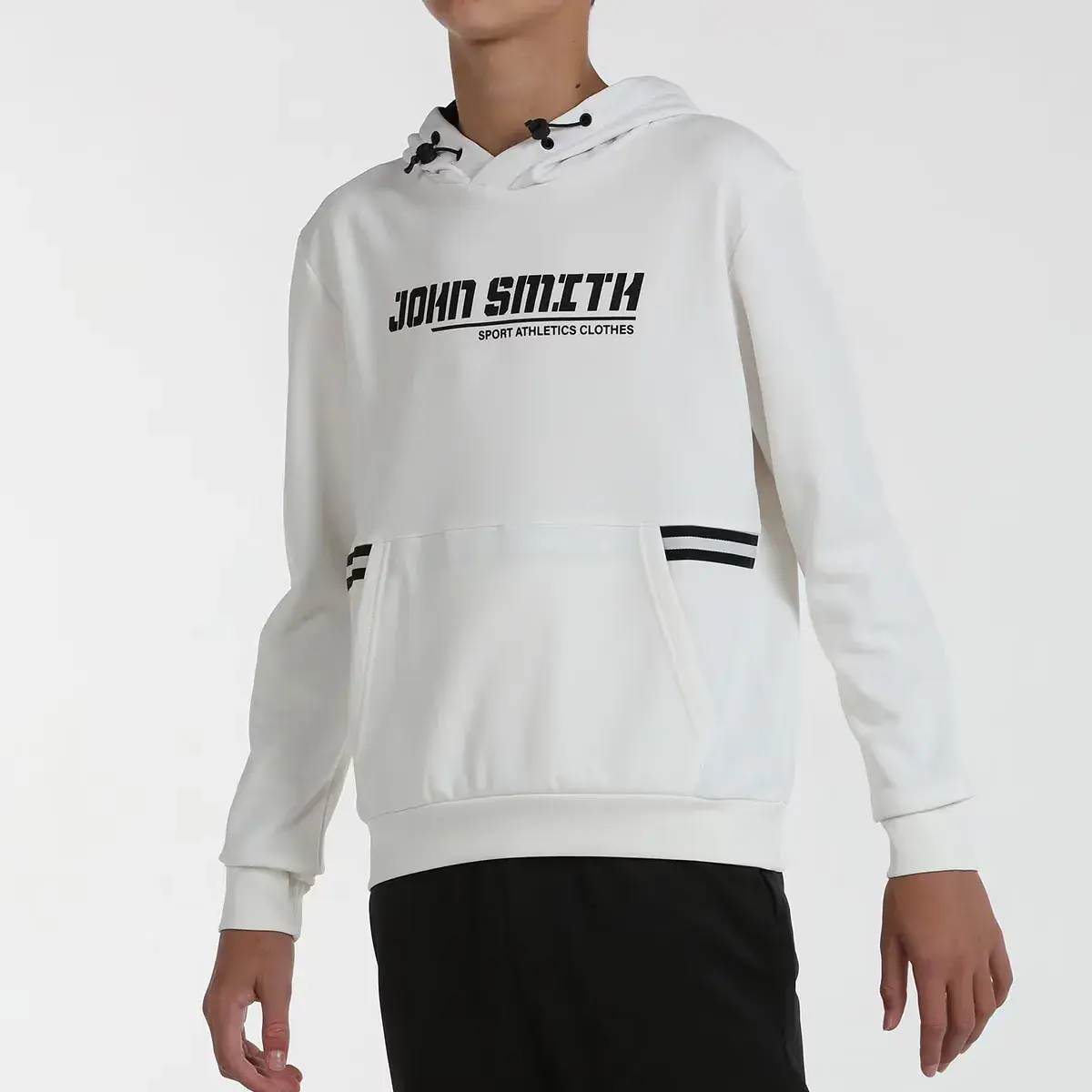 Толстовка из полиэстера с капюшоном и карманом в виде кенгуру, декоративной лентой и принтом на груди.