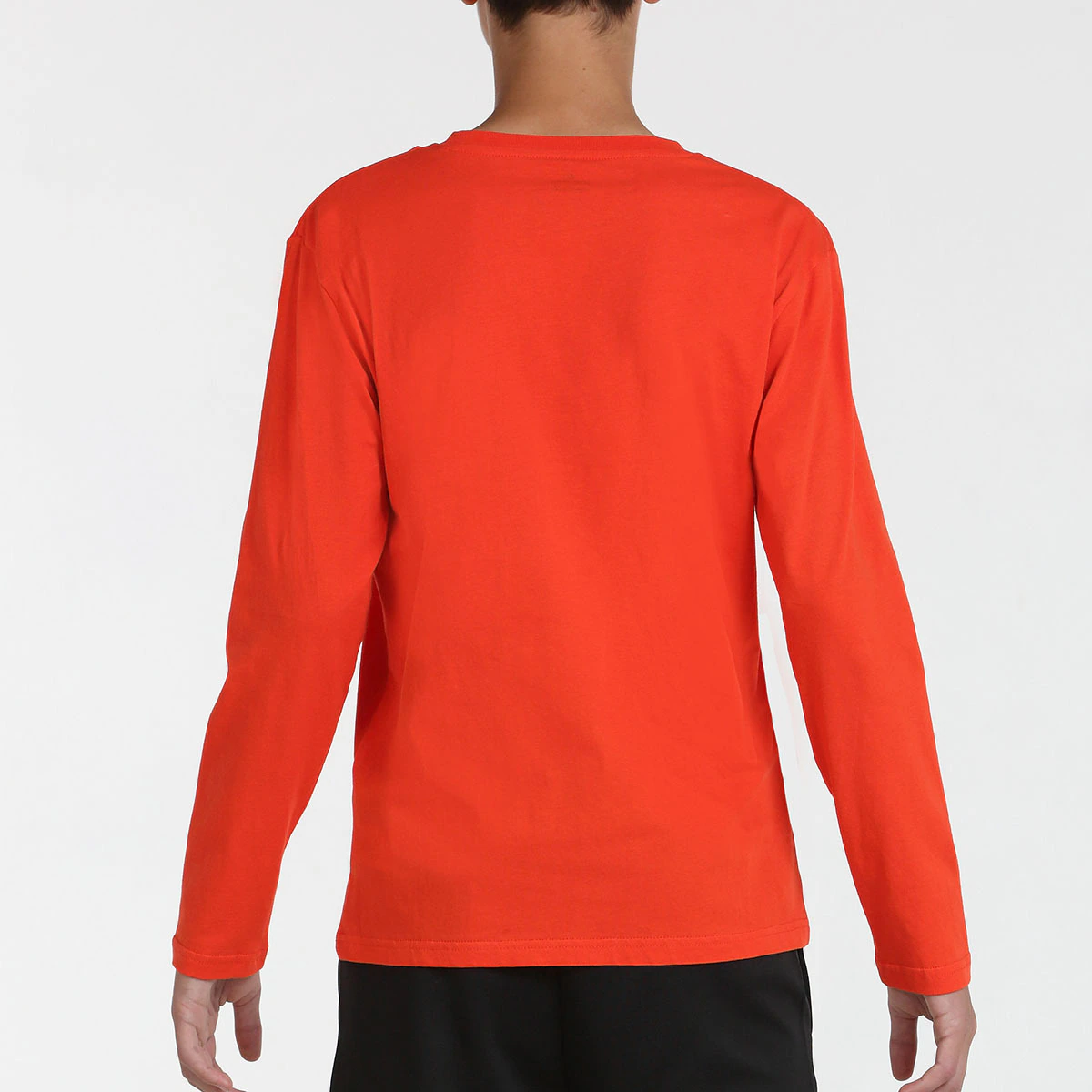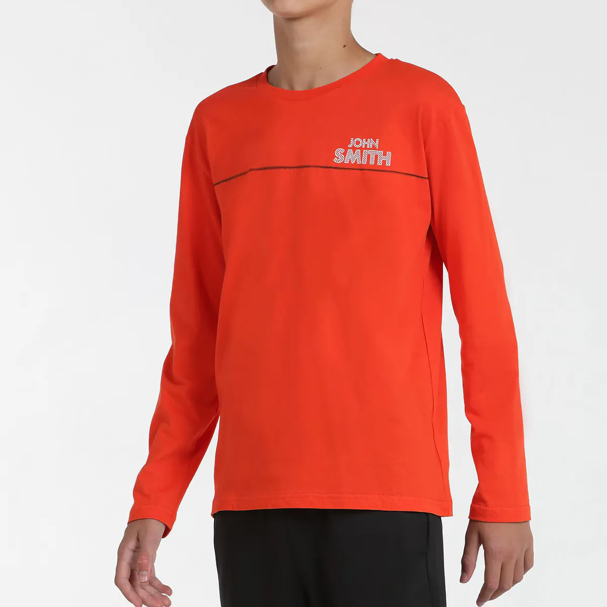 Футболка из хлопка, с ребристым вырезом и длинными рукавами и позиционной графикой на груди.