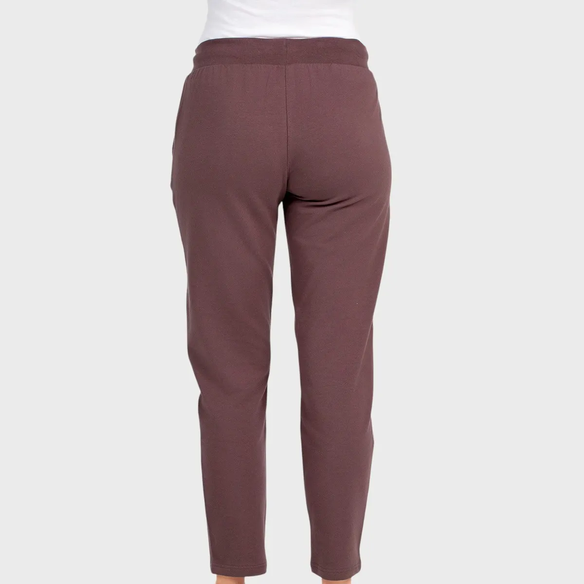 Женские длинные брюки с более узким силуэтом, ребристым поясом, шнурками и боковыми карманами. Стрейч из френч махровой хлопчатобумажной ткани.