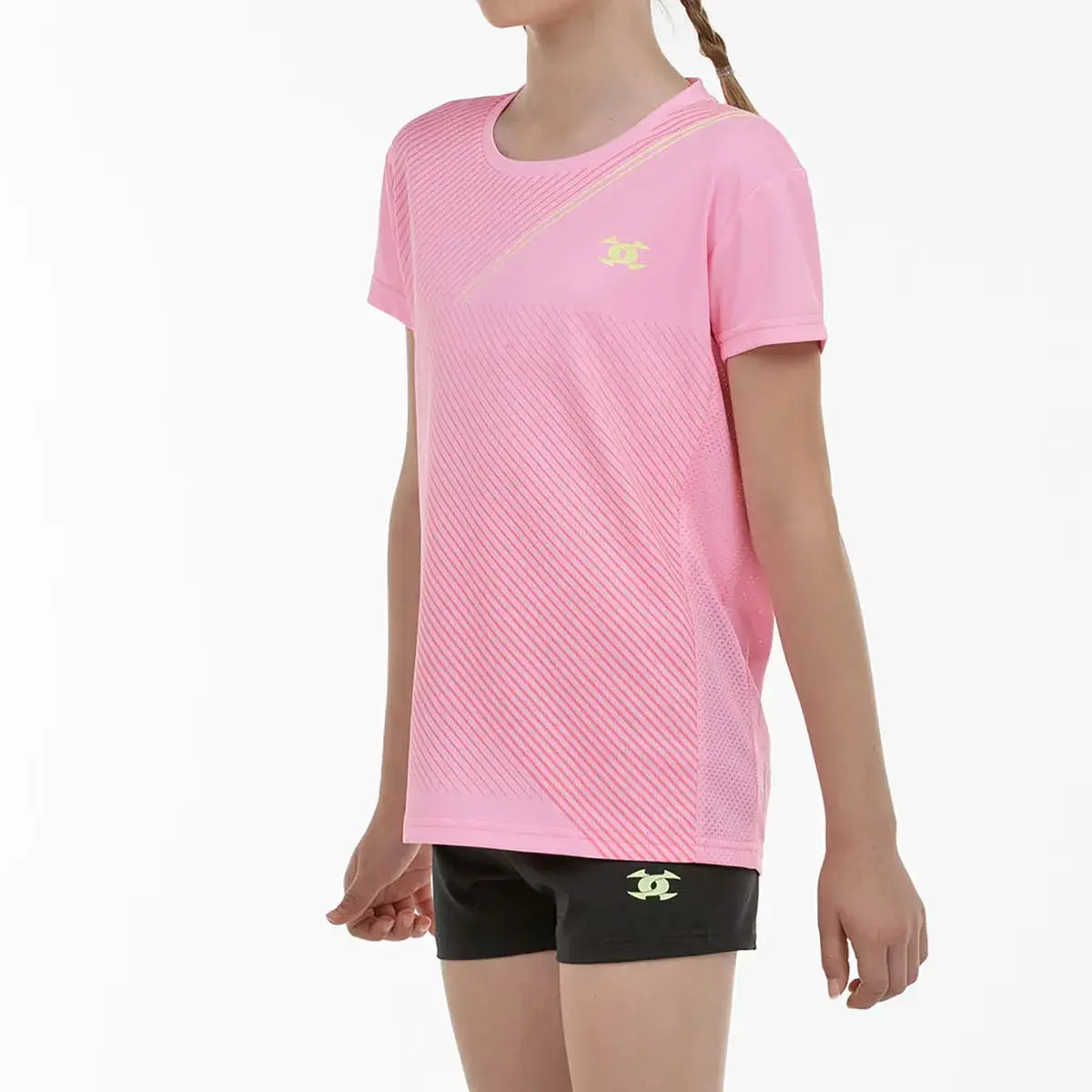 Спортивный комплект для девочек. Футболка с короткими рукавами из полиэстера с быстросохнущей отделкой и дышащей тканью сзади, спереди с графическими и светоотражающими деталями. Короткая сетка из полиэстера с эластаном, принтом и драйнамической отделкой.