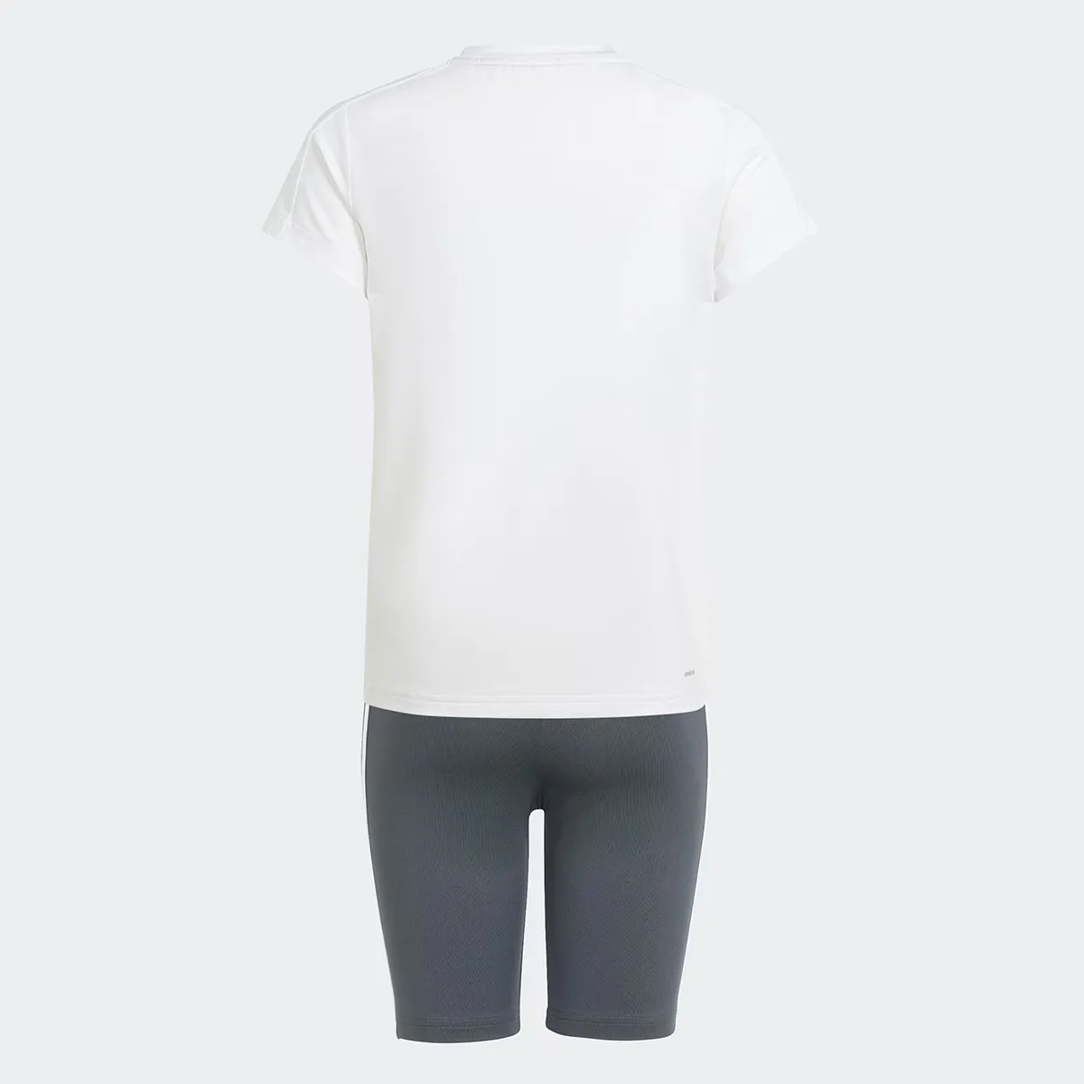 Этот комплект adidas для юных спортсменов адаптируется ко всем вашим планам, будь то расслабляющие выходные или празднование после матча. Рубашка и короткие колготки изготовлены из легкой и эластичной ткани с дышащей технологией AEROREADY, которая сохраняет кожу сухой и гарантирует абсолютный комфорт. 3 полосы по бокам придают ему безошибочно узнаваемый спортивный штамп adidas.