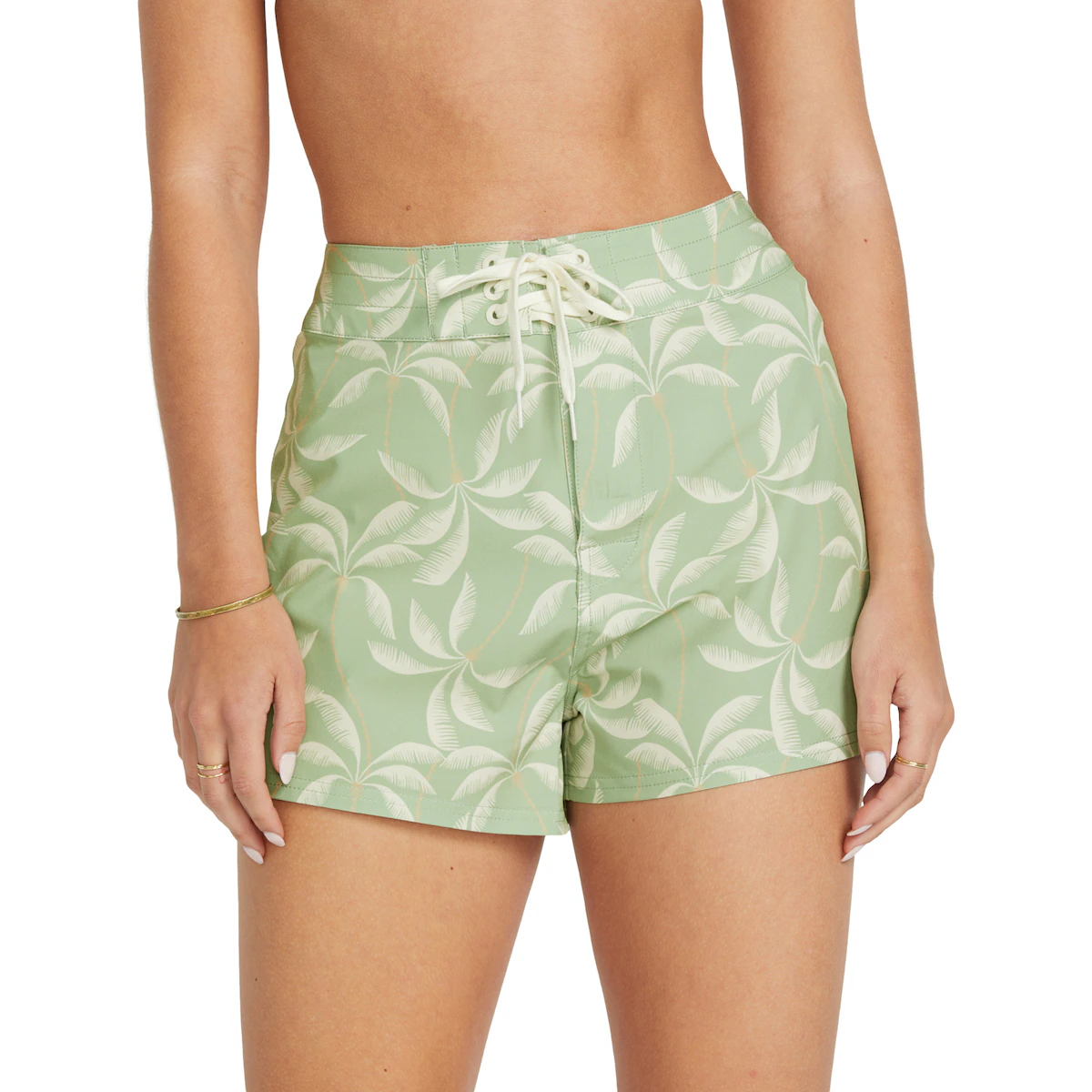 Женские шорты. Особенности включают: Коллекция: Gone Tropic Collection, ткань: ткань из смеси нейлона и эластана, Талия: Фиксированная талия, Застежка: Центральная застежка спереди с завязками на талии, Длина подъема: 6,3 см, Бренд: Нашивка с логотипом в центре спины.