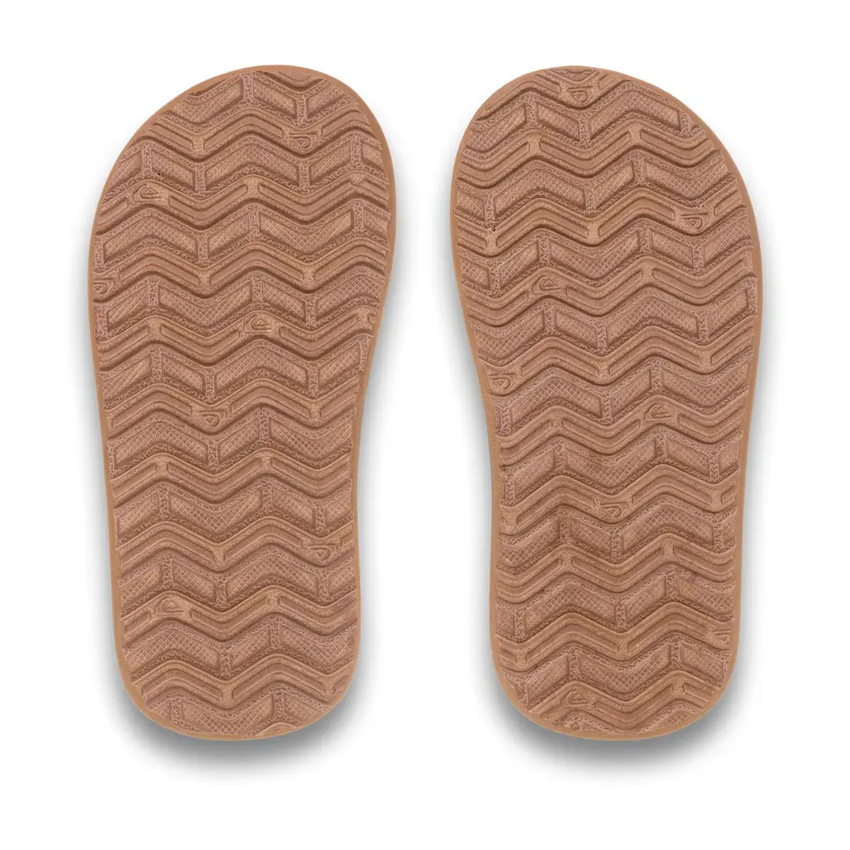 Босоножки для детей. Особенности включают в себя: полностью регулируемый верх ремешка из полиэстера, полностью съемный ремешок на пятке, межподошву из EVA двойной плотности для комфорта и поддержки, анатомическую поддержку свода стопы и логотипы Quiksilver с дизайном «елочкой» различной ширины на прочной резиновой подошве.