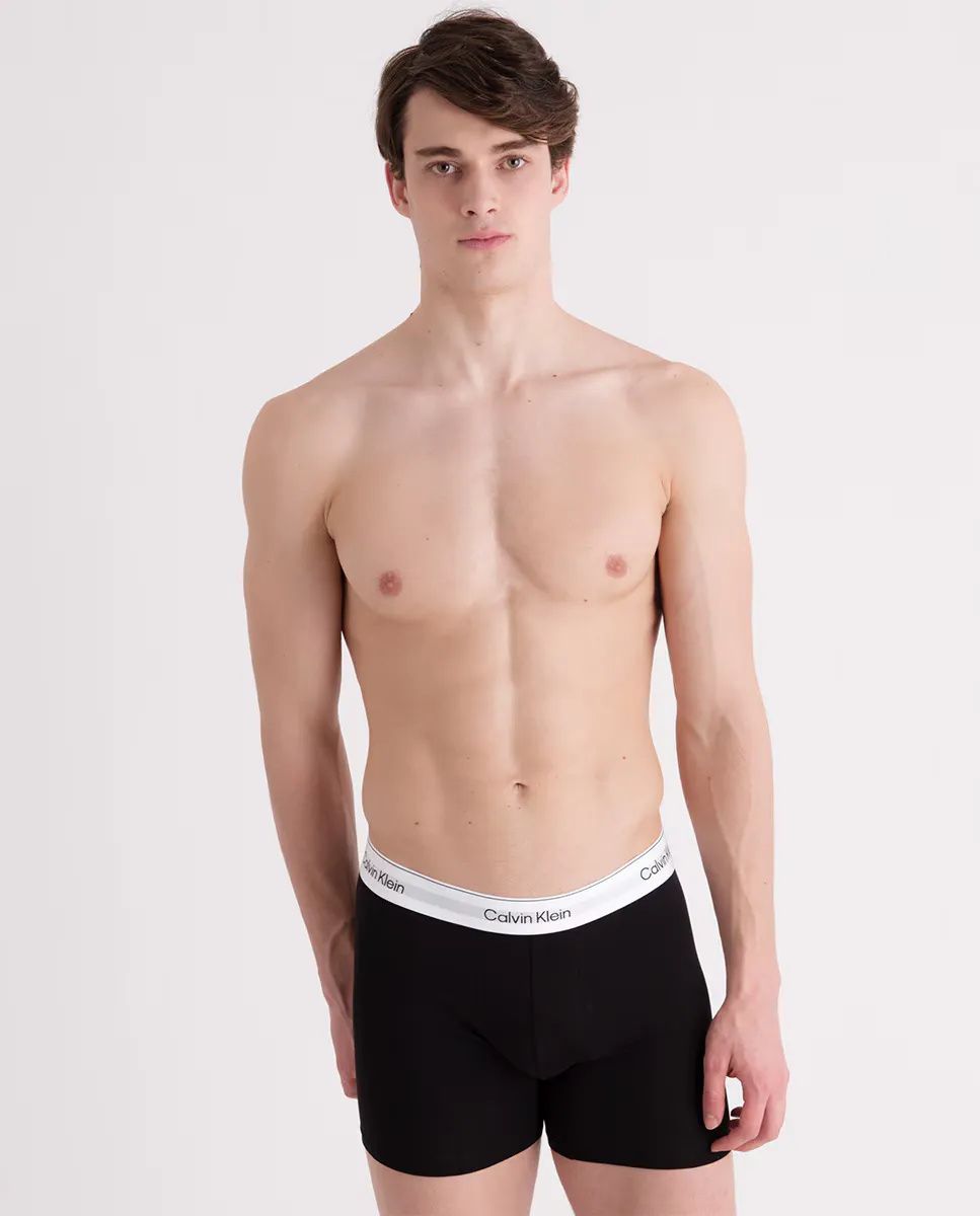 Набор из 3 длинных хлопковых боксеров с характерным логотипом Calvin Klein на эластичном поясе.