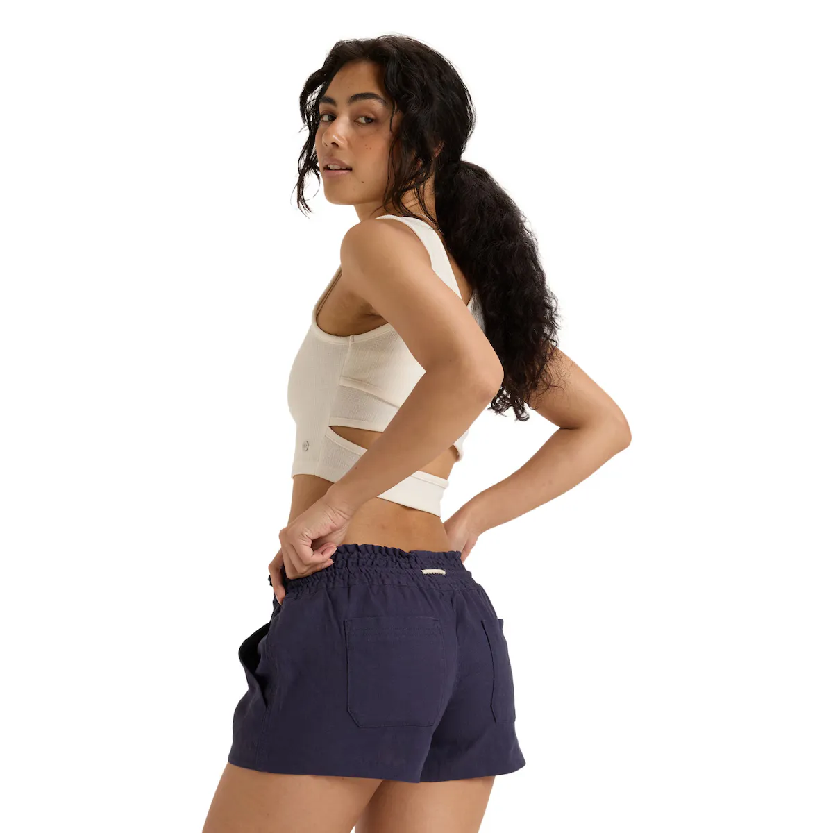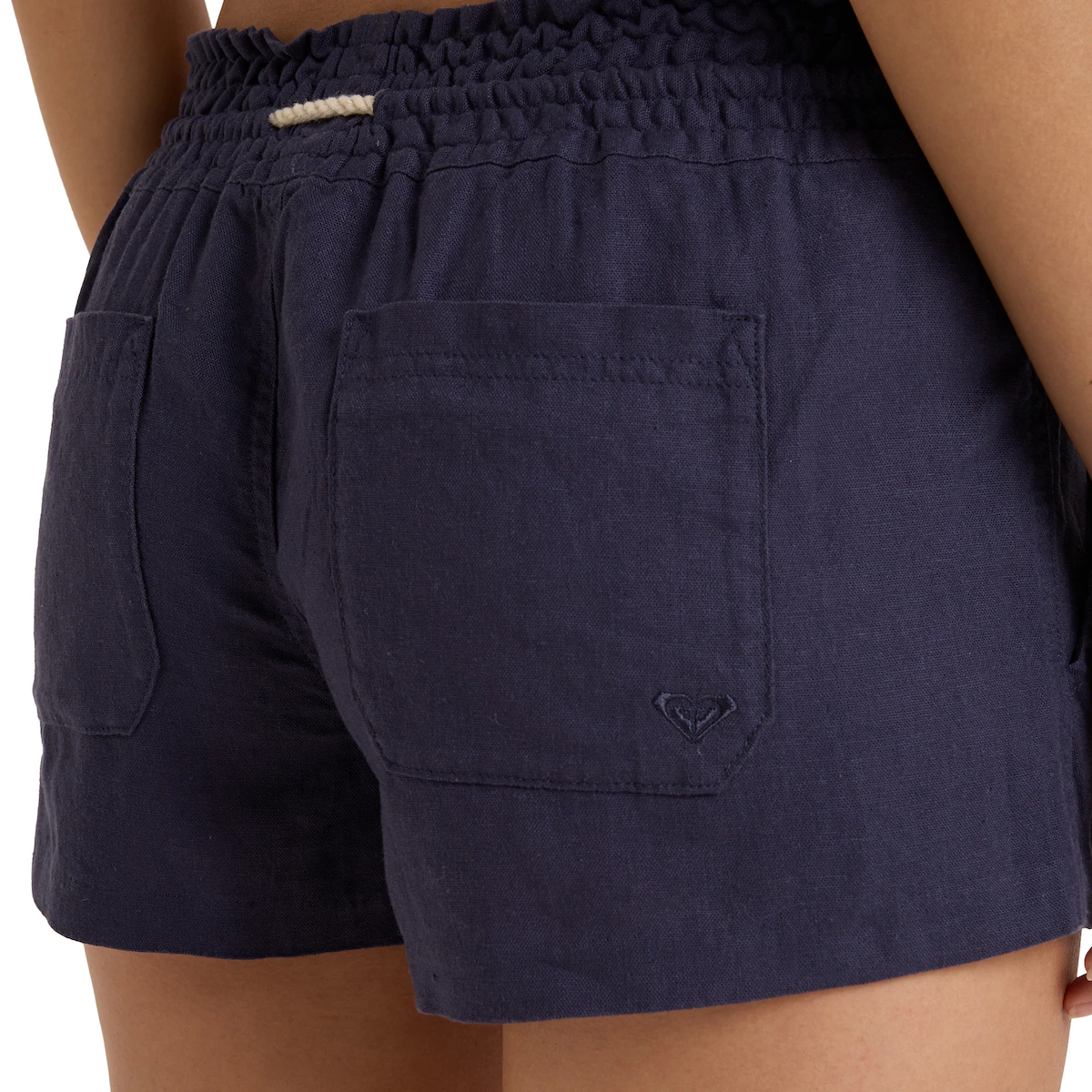 Женские эластичные шорты. Особенности включают: Ткань: Смесовая ткань из вискозы и льна [200 г/м2], Крой: пляжный крой, Длина: Длина 27,4 см, Короткая, Длина посадки: 6,3 см, Ширинка / талия: Присборенная талия, Карманы: боковые карманы, Бренд: Вышивка в виде сердца на правом заднем кармане..