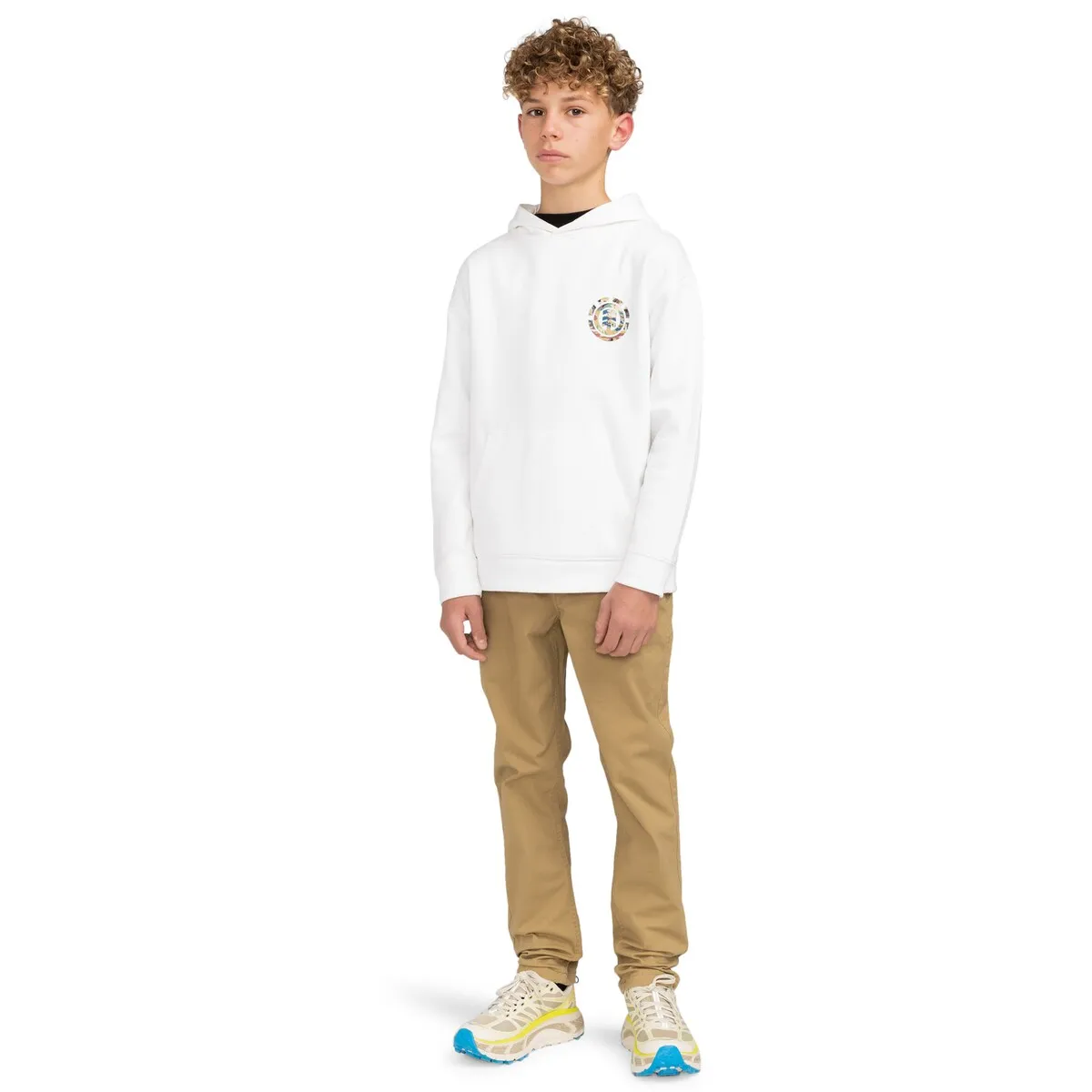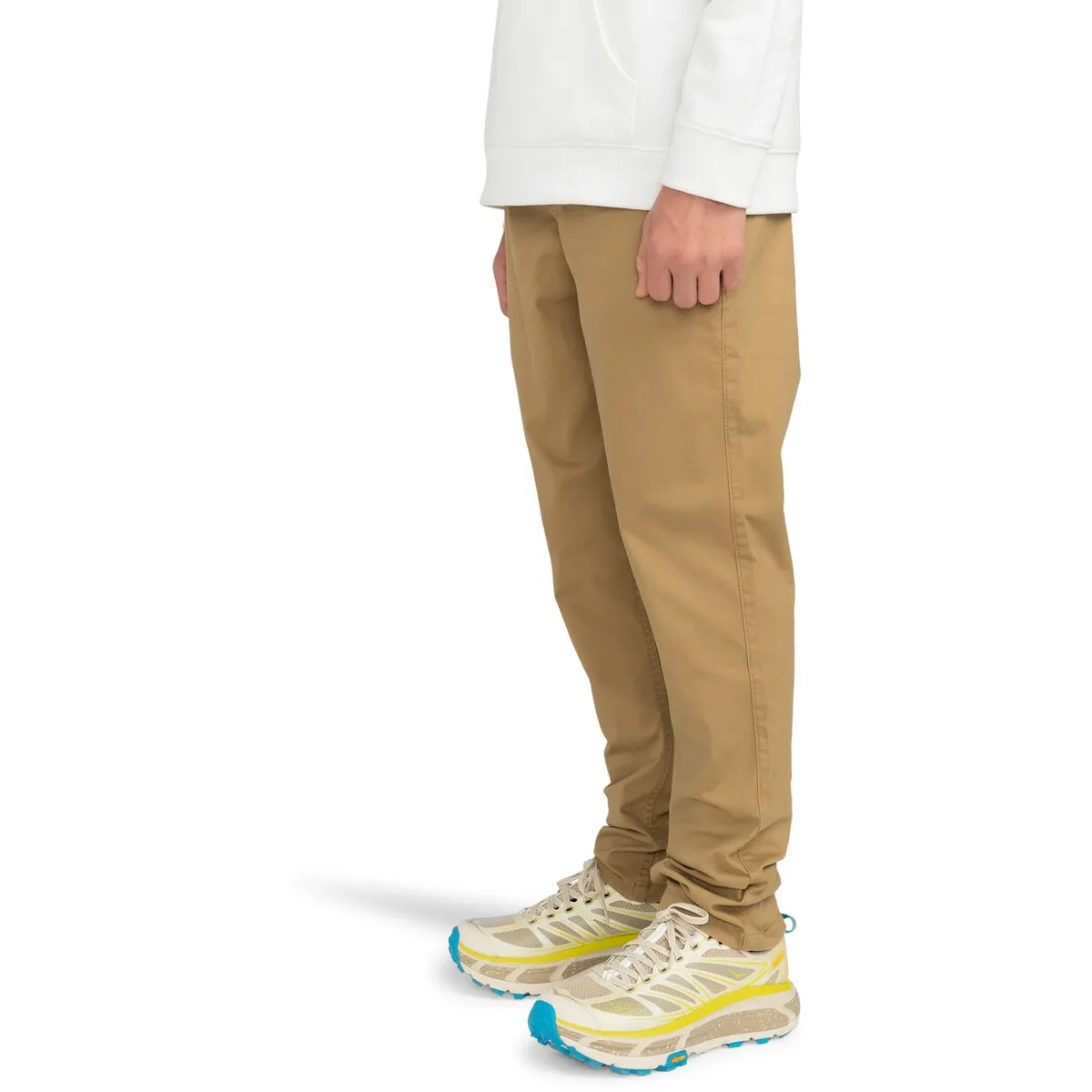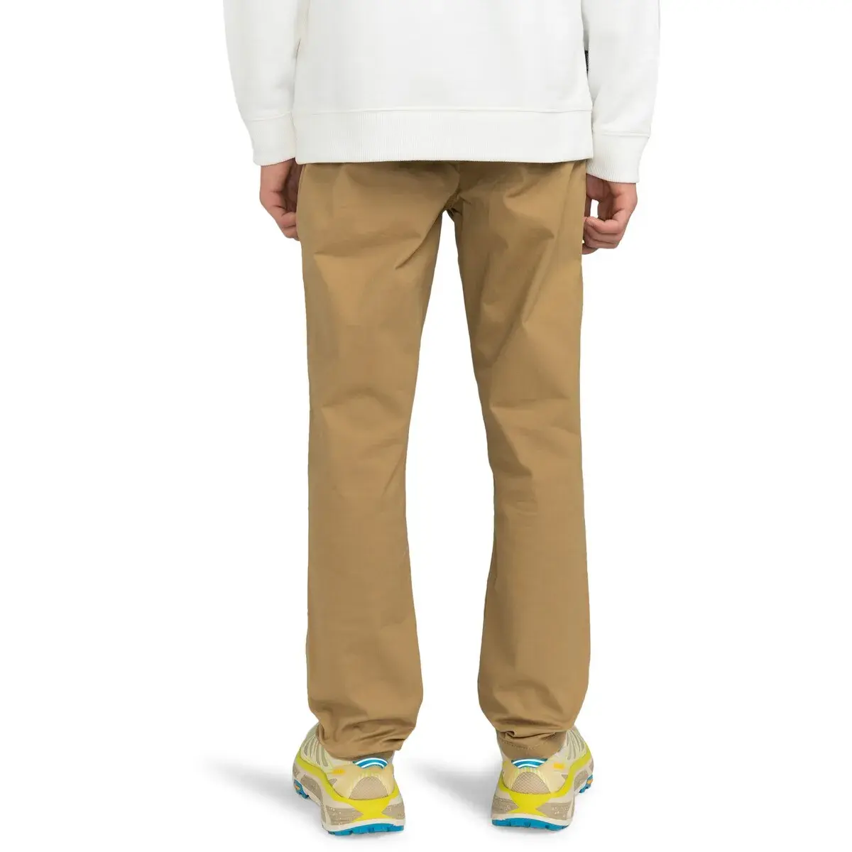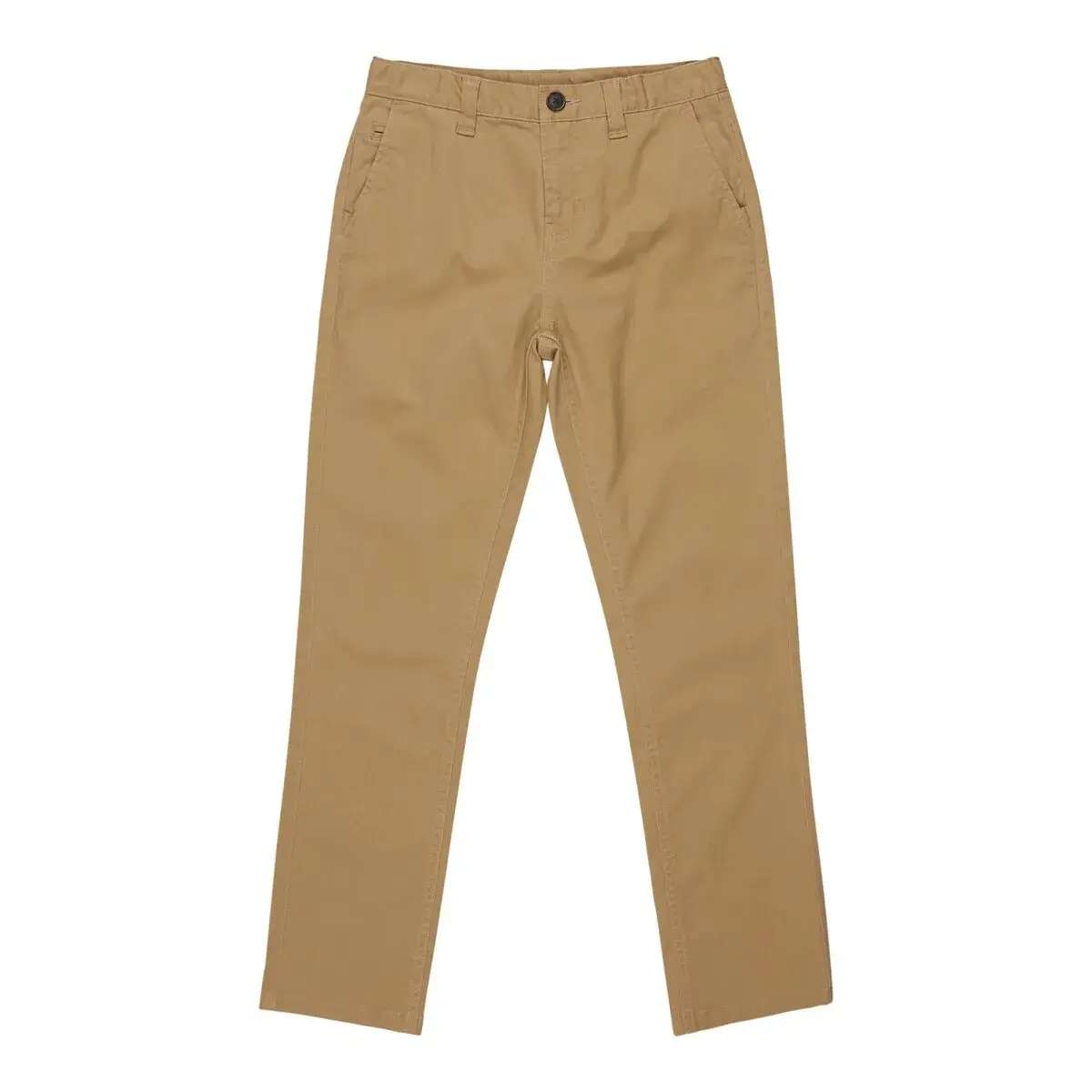 Брюки чинос для детей 8-16 лет. Особенности включают: Ткань: гибкая саржа. Смесь обычного хлопка и переработанного хлопка. Крой: Приталенный крой. Талия: ширинка на молнии. Передние шовные карманы и задние прорезные карманы.
