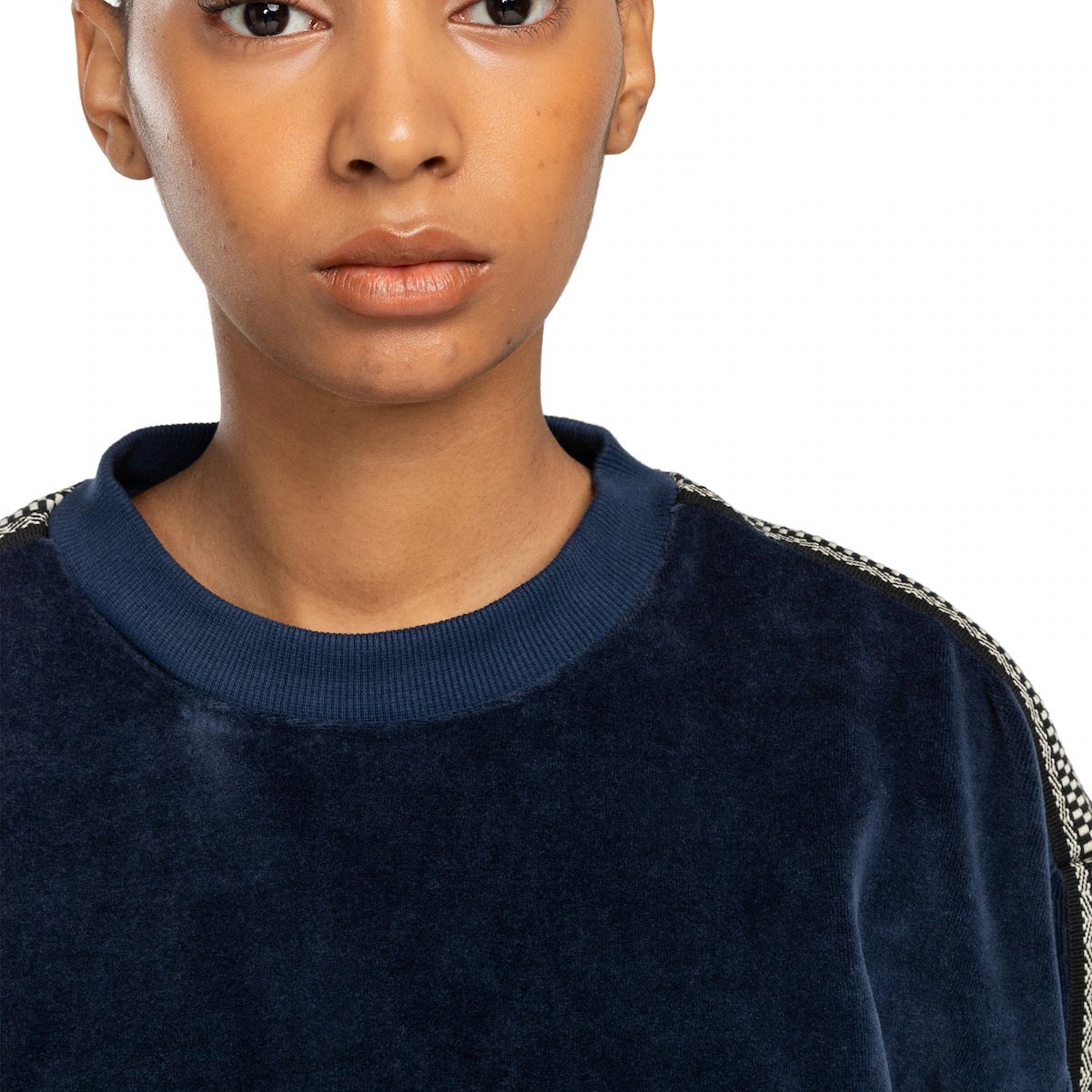 Женская толстовка. Особенности включают: Коллекция: Основная коллекция. Ткань: 75% хлопчатобумажная бархатная ткань. 20% полиэстер и 5% эластан [350 г/м2]. Огранка: Квадратная резка. Горловина: Круглая горловина. Рукава: Длинные рукава. Застежка: закрытая конструкция. Бренд: фирменная этикетка на шве и другие особенности: плечи и рукава с жаккардовой лентой сверху.