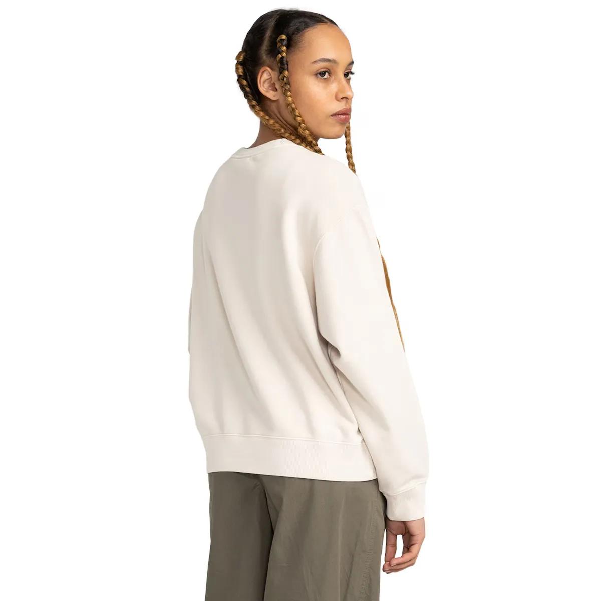 Женская толстовка. Особенности включают в себя: Коллекция: Основная коллекция, Ткань: Нечесаная френч-махровая ткань 50% переработанный хлопок 30% хлопок 20% переработанный полиэстер [350 г/м2], Сознательное от природы: переработанный хлопок GRS, Краситель: пигментный краситель, Крой: свободный крой, Горловина: Круглый вырез, Рукава: Длинные рукава, Застежка: Без открытия и Бренд: вышитый логотип на груди.