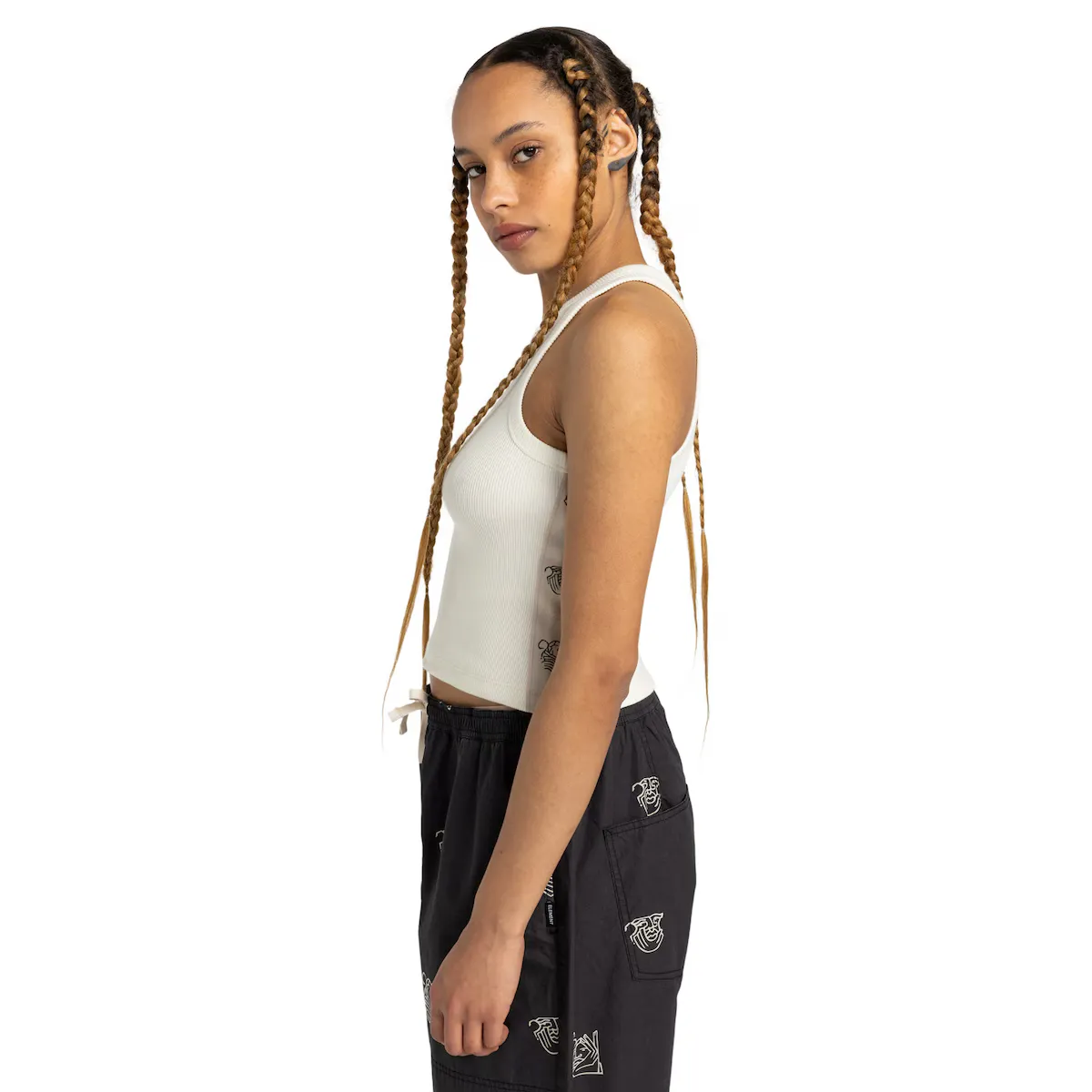 Женская футболка без рукавов. Особенности включают: Коллекция: Element x Vitoria Mendonca collection, Ткань: Трикотаж в рубчик из смеси хлопка и эластана (335 г/м2), Крой: Облегающий крой, Горловина: Круглый вырез, Застежка: Без расстежки и Бренд: Боковая тканевая этикетка.
