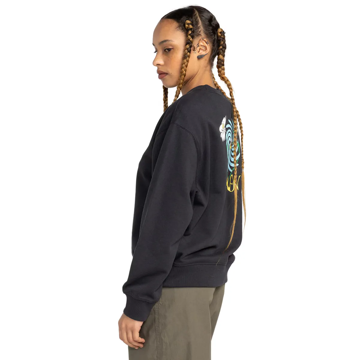 Женская толстовка. Особенности включают: Коллекция: Основная коллекция, Ткань: Нечесаная френч-махровая ткань из смеси 70% хлопка, 30% переработанного хлопка [320 г/м2], Conscious by Nature: Переработанный хлопок GRS, Крой: Свободный крой, Горловина: Круглый вырез, Рукава: Длинные рукава, Застежка: Без открытия, Бренд: Принт на водной основе спереди и сзади и Внешний вид изделия может варьироваться в зависимости от ситуации с принтом.