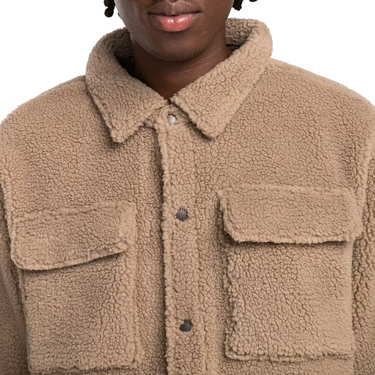 Мужская куртка из овчины. Особенности включают: Коллекция: Основная коллекция. Ткань: 100% переработанный полиэстерный флисовый шерпа [690 г/м2]. Крой: Свободный крой. . Рукава: Длинные рукава. Застежка: застежка на кнопку. Карманы: карманы с клапанами. Боковые карманы доступа. Внутренняя ткань: без подкладки. Бренд: пластырь из синтетической замши и Другие особенности: теплый утеплитель.