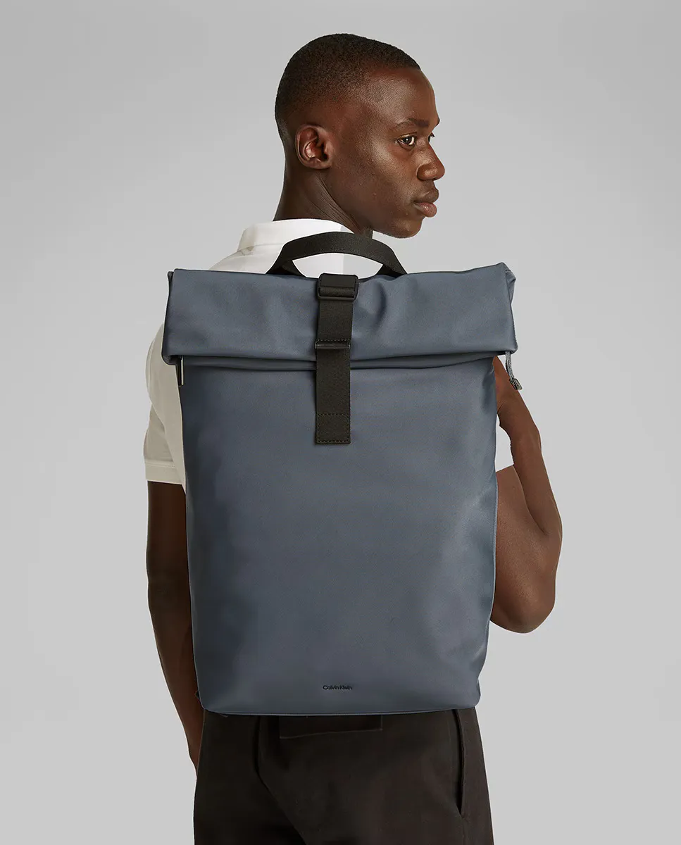 Современность. Смелость. Нововведение. Мужская одежда Calvin Klein предлагает широкий выбор высококачественных мужских аксессуаров. Этот мужской рюкзак от Calvin Klein из нейлона имеет застежку-закатку на молнию и пряжку, верхнюю ручку, заднюю набивку и логотип бренда спереди.