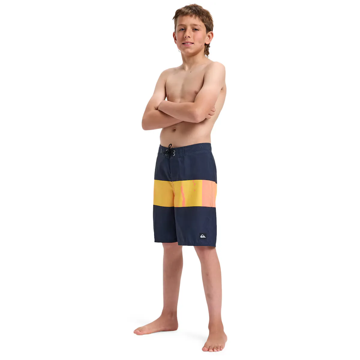 Плавательные шорты для детей от 8 до 16 лет. Особенности включают: Ткань: 100% переработанный полиэстер Supersuede, Поддерживайте высокий уровень производительности и низкий углеродный след., Этот продукт изготовлен из производственных отходов и текстильных отходов, на шаг ближе к экономике замкнутого цикла., Обработка: Гидрофобное покрытие без ПФУ, Крой: Прямая нога, Талия: Классическая и удобная фиксированная талия, Застежка: Застежка: Регулируемая застежка на шнурке, Длина: короткая длина 43,2 см, Карманы: боковые карманы доступа, Задний карман с самоклеящейся застежкой, Бренд: классический логотип горы и волны, Другие особенности: эластичный шнур для ключей внутри кармана, Переработанная нить, Вневременной стиль.