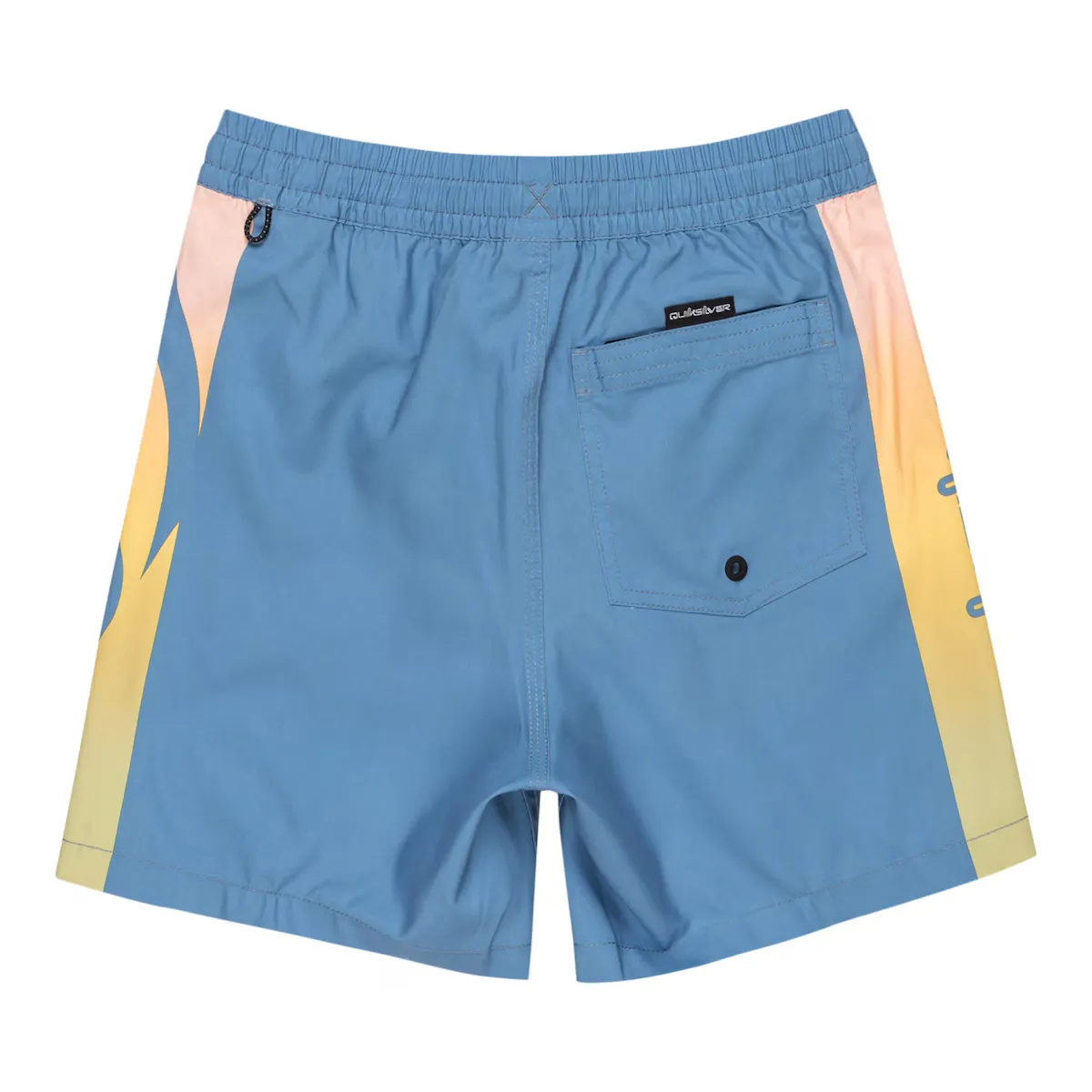 Плавательные шорты для детей от 8 до 16 лет. Особенности включают: Ткань: 100% переработанный полиэстер, Талия: Эластичная талия, Застежка: Регулируемая застежка на шнурке, Карманы: боковые карманы, Длина: длина 36 см, короткая, Бренд: трафаретная печать на ногах и нашивка с логотипом Quiksilver на ноге.