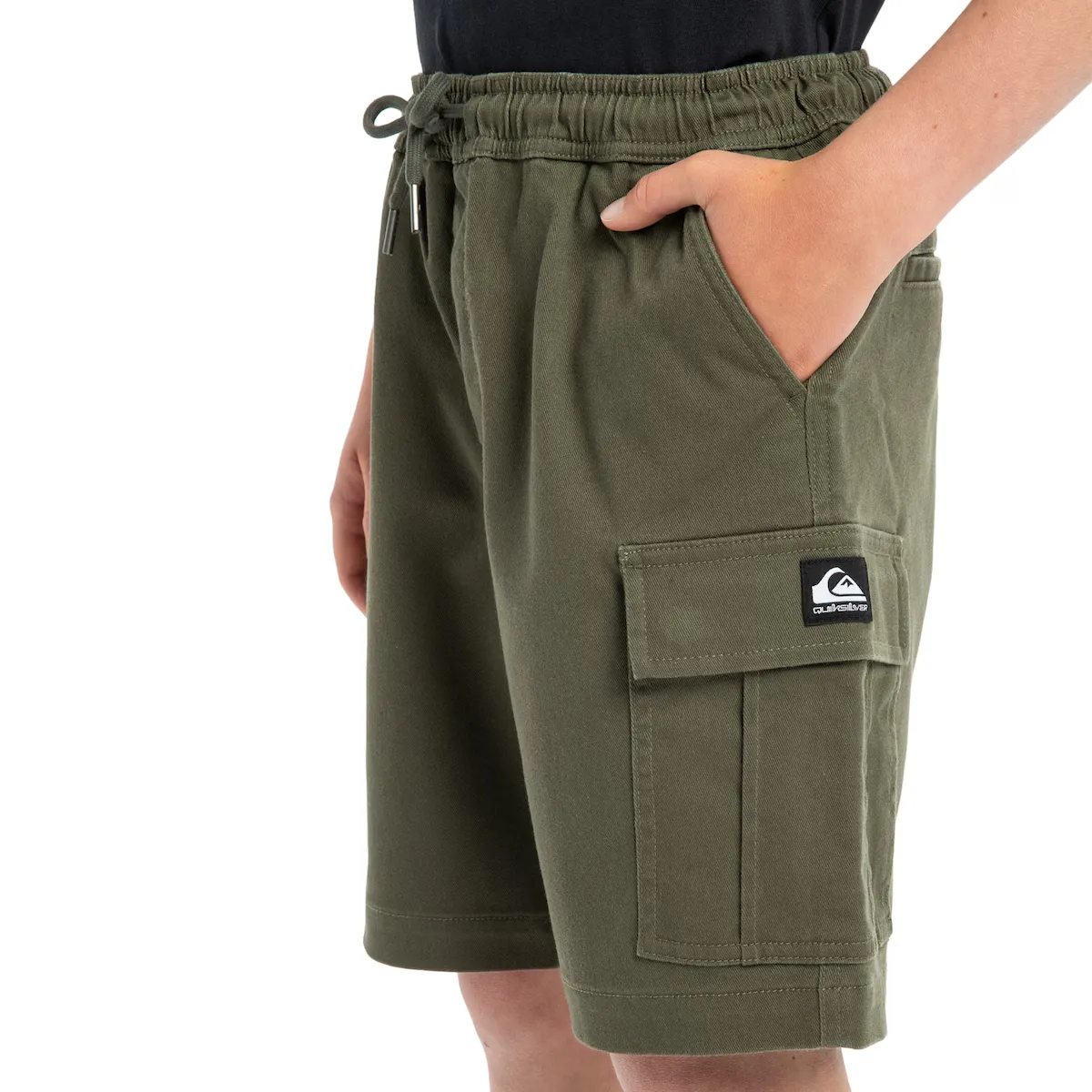 Короткие грузы для детей от 8 до 16 лет. Особенности включают: Ткань: саржа, смесь полиэстера, хлопка и эластана, Крой: эластичный крой, Талия: эластичная талия на молнии, Застежка: регулируемая застежка на шнурке, Карманы: боковые карманы, Задние карманы, Карго-карманы и бренд: Бренд Quiksilver.