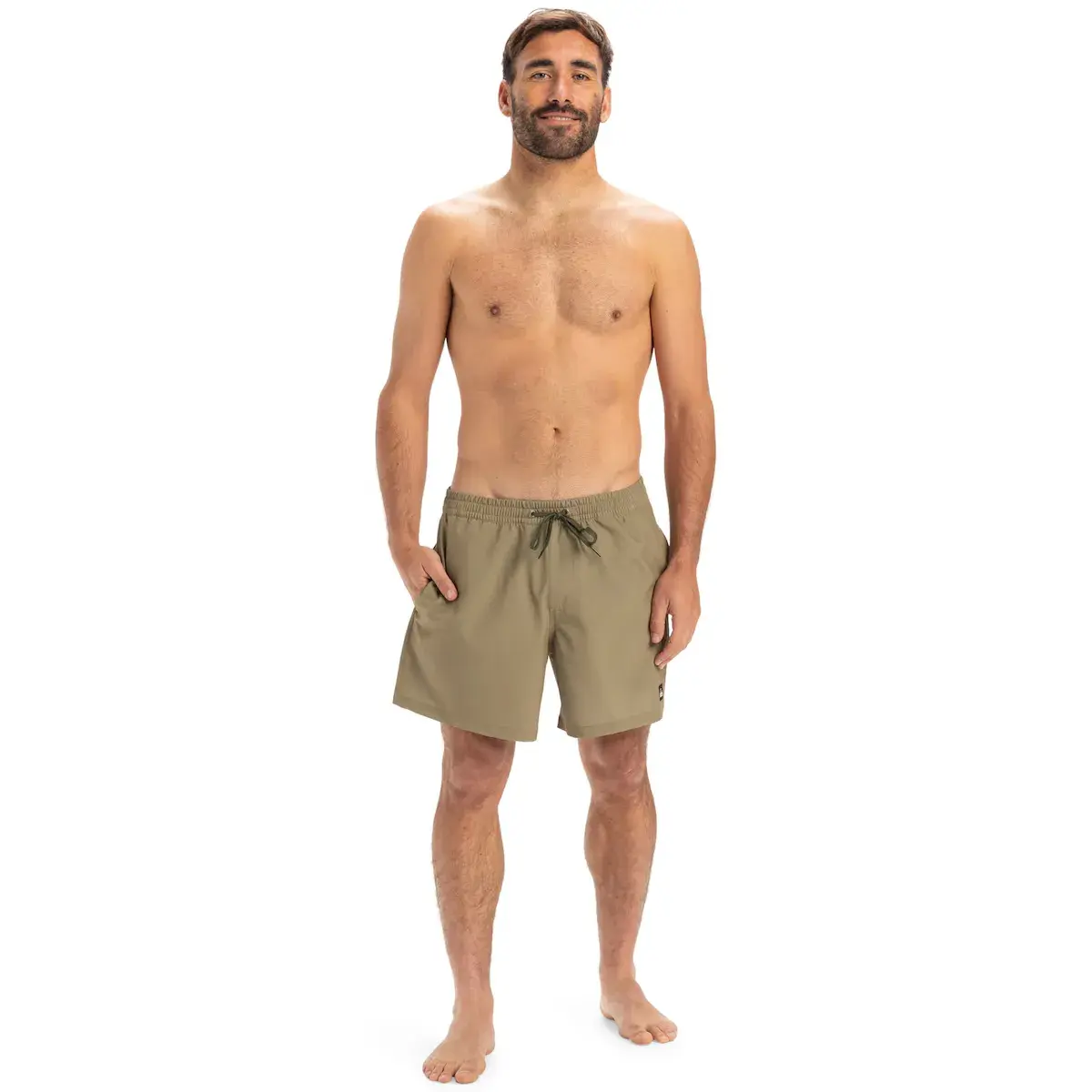 Мужские плавательные шорты. Особенности включают: Ткань: 92% переработанный полиэстер с 8% эластана, Талия: Эластичная талия, Застежка: Регулируемая застежка на шнурке, Длина: Длина 41 см, короткая и Бренд: Нашивка с логотипом Quiksilver на ноге.