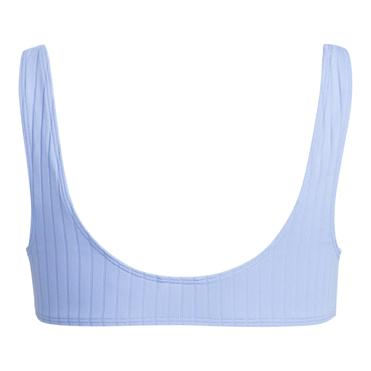 Топ бикини с полным покрытием для женщин. Особенности включают: Коллекция: UNI, ткань в жаккардовую полоску, смесь эластана и переработанного полиамида [260 г/м2], Прямая горловина, фиксированные бретели, Мягкое и съемное наполнение чашек, полное покрытие, Фиксированная застежка, внутренняя ткань из эластана и полиэстера по всей одежде, Бренд: этикетка с логотипом на левой пройме и другие особенности: передние вытачки для лучшей посадки.