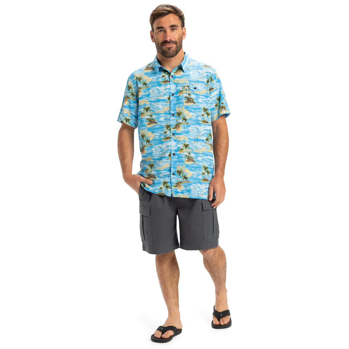 Мужская рубашка с коротким рукавом. Особенности включают: Коллекция: Lifestyle, Ткань: Вискозная ткань Ecovero [131 г/м2], крой: обычный крой, Рукава: короткий рукав, Застежка: обычная застежка на пуговицы, Карманы: Одинарный нагрудный карман, Бренд: переработанные этикетки Quiksilver, Другие особенности: плавный крой и Made Better.