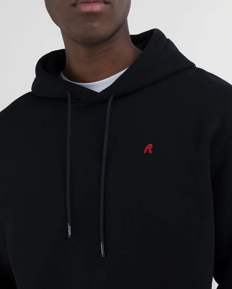 Свитшот стандартного кроя из мягкого и теплого 100% поликоттона, окрашенного после сборки. Модель с длинными рукавами имеет регулируемый капюшон на шнурке и металлическую отделку с логотипом, а также дополнена культовой вышивкой R на груди, выражением ДНК Replay.