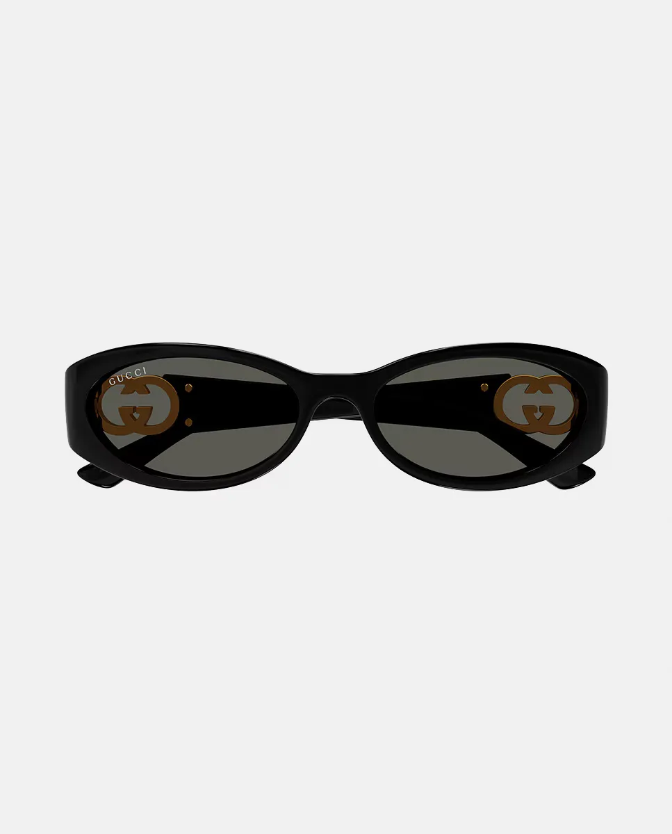 Складные солнцезащитные очки, вдохновленные файлами для инъекций, с переплетающимся логотипом GG, перфорированным на дужках. Винтажный женский миндалевидный дизайн. Функциональный логотип GG на шарнире. Палитра плавных и молодежных поп-цветов.