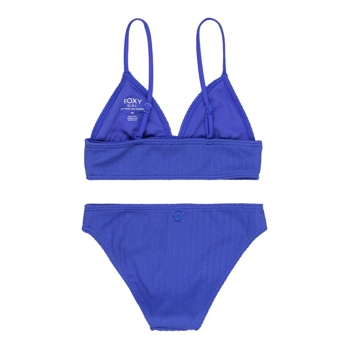 Набор для ванной комнаты из двух предметов для детей (6 - 16 лет). Особенности включают: Коллекция: Aruba RG Collection, Ткань: Эластичная трубчатая ткань, мягкая, прочная, переработанная, смесь 92% переработанного полиэстера 8% эластана, Дизайн: Треугольный дизайн бака, Воротник: V-образный вырез, Наполнение: Съемная набивка в размерах для 12-16 лет, Ремни: регулируемые лямки с косточками и бегунком, Покрытие: полное покрытие, Застежка: фиксированная застежка и Бренд: Резиновая пластина Roxy с сердцем.