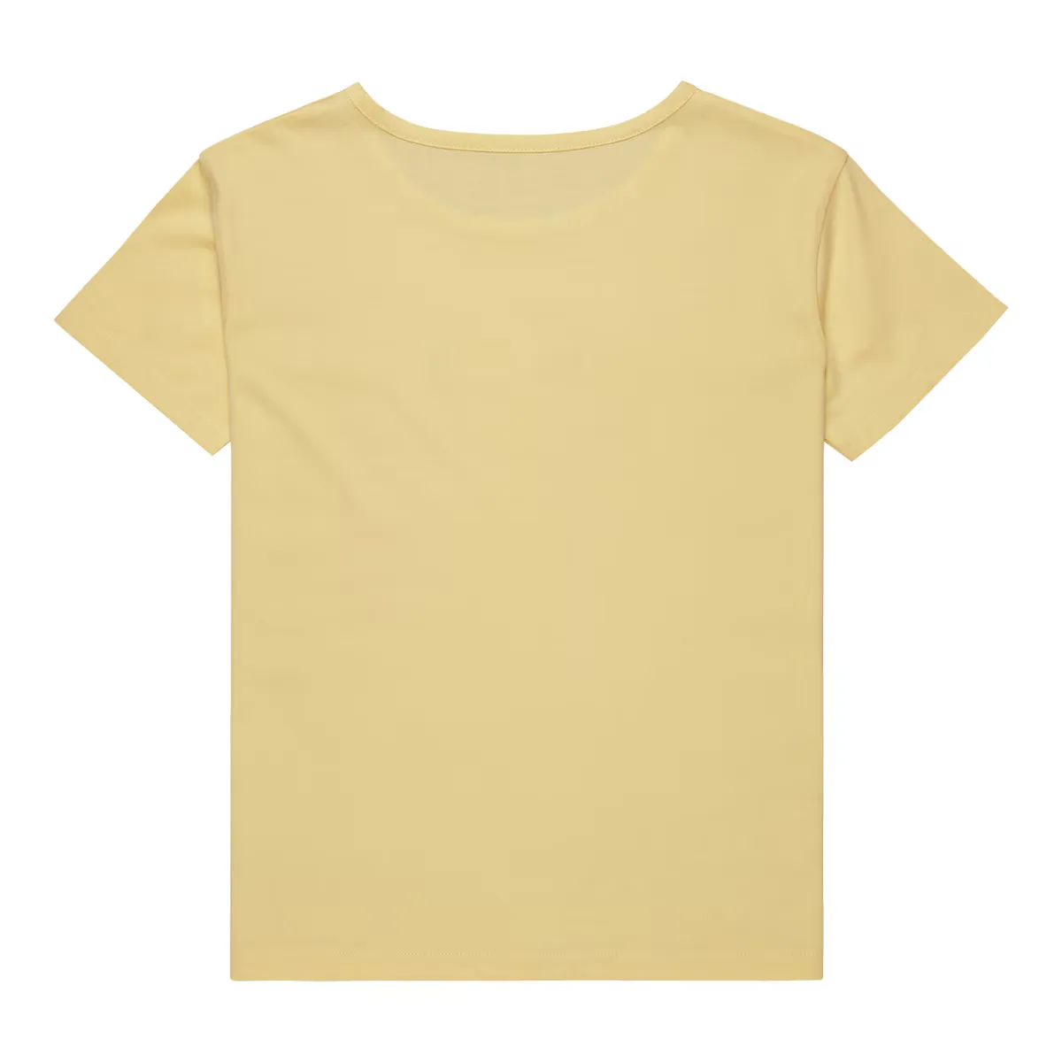 Футболка с коротким рукавом для детей (4 - 16 лет). Особенности включают: Ткань: трикотаж из 100% органического хлопка [140 г/м2], Стирка: Био стирка одежды, крой: обычная посадка, Горловина: круглый вырез, Рукава: короткий рукав, Бренд: трафаретная печать спереди и Другие особенности: ребристый воротник.