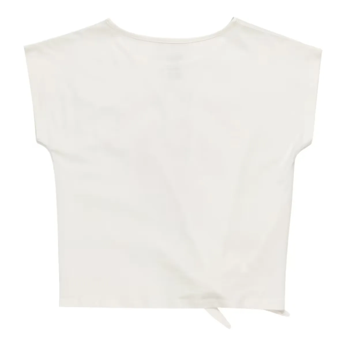 Футболка с коротким рукавом для детей (4 - 16 лет). Особенности включают: Ткань: трикотаж из 100% органического хлопка [140 г/м2], Стирка: Био стирка одежды, крой: обычный крой, Горловина: круглый вырез, Рукава: короткий рукав, Другие особенности: Узел на нижней передней части тела и Бренд: трафаретная печать спереди.