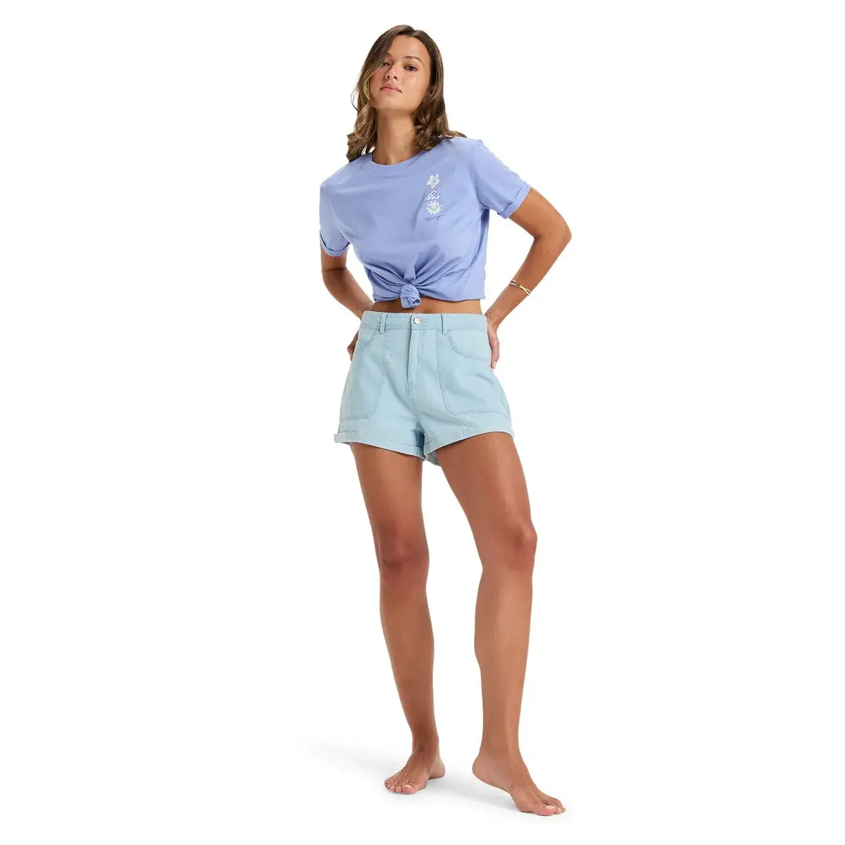 Женские джинсовые шорты. Особенности включают: Ткань: Джинсовая ткань с легкой стиркой (7 унций), Крой: Свободный крой, Талия: Средняя посадка, Талия: Фиксированная талия, Застежка: Передняя застежка на резинку и классические высокие металлические пуговицы, Ширинка: молния, Карманы: практичные накладные карманы спереди, Задние накладные карманы и Другие детали: Закатные брюшки.
