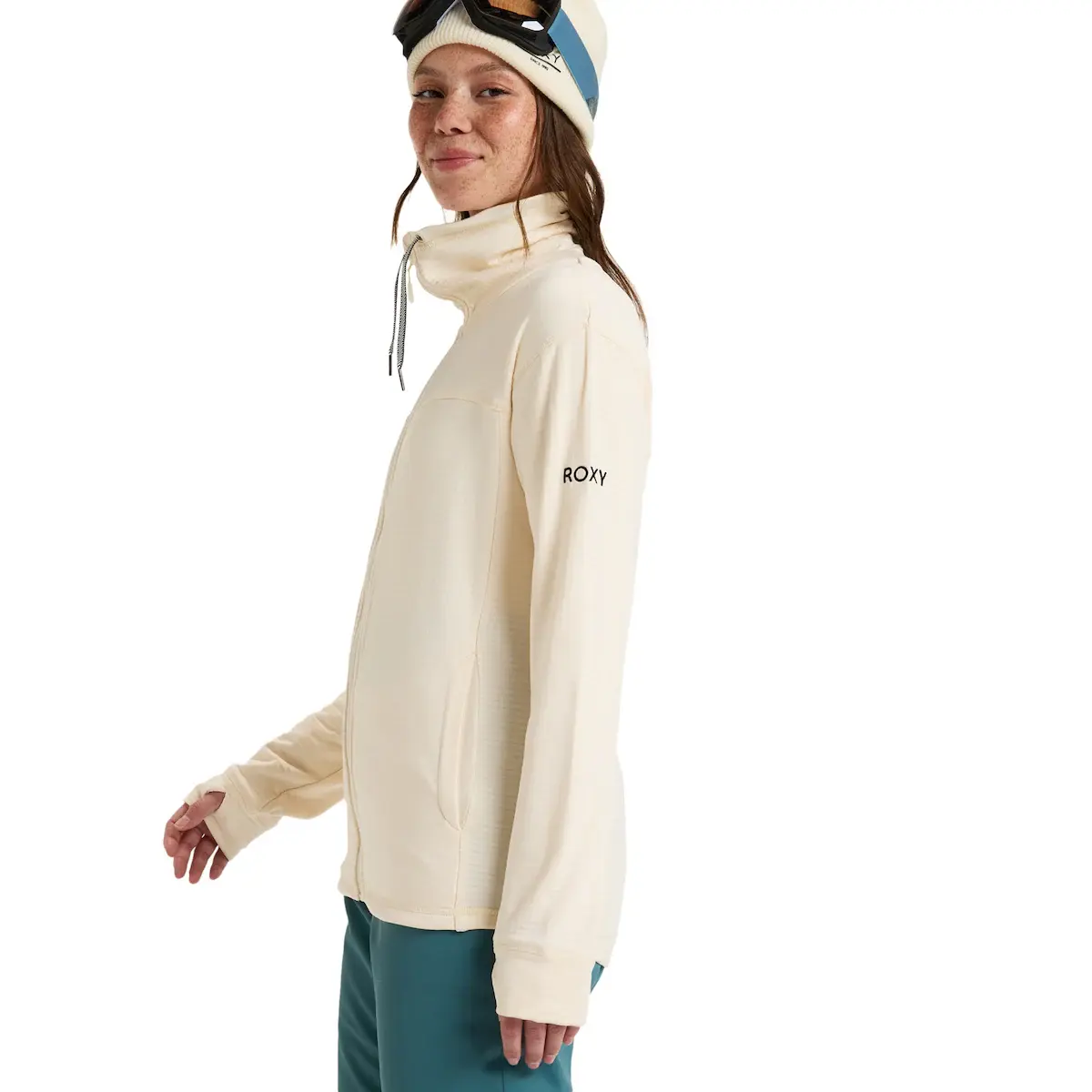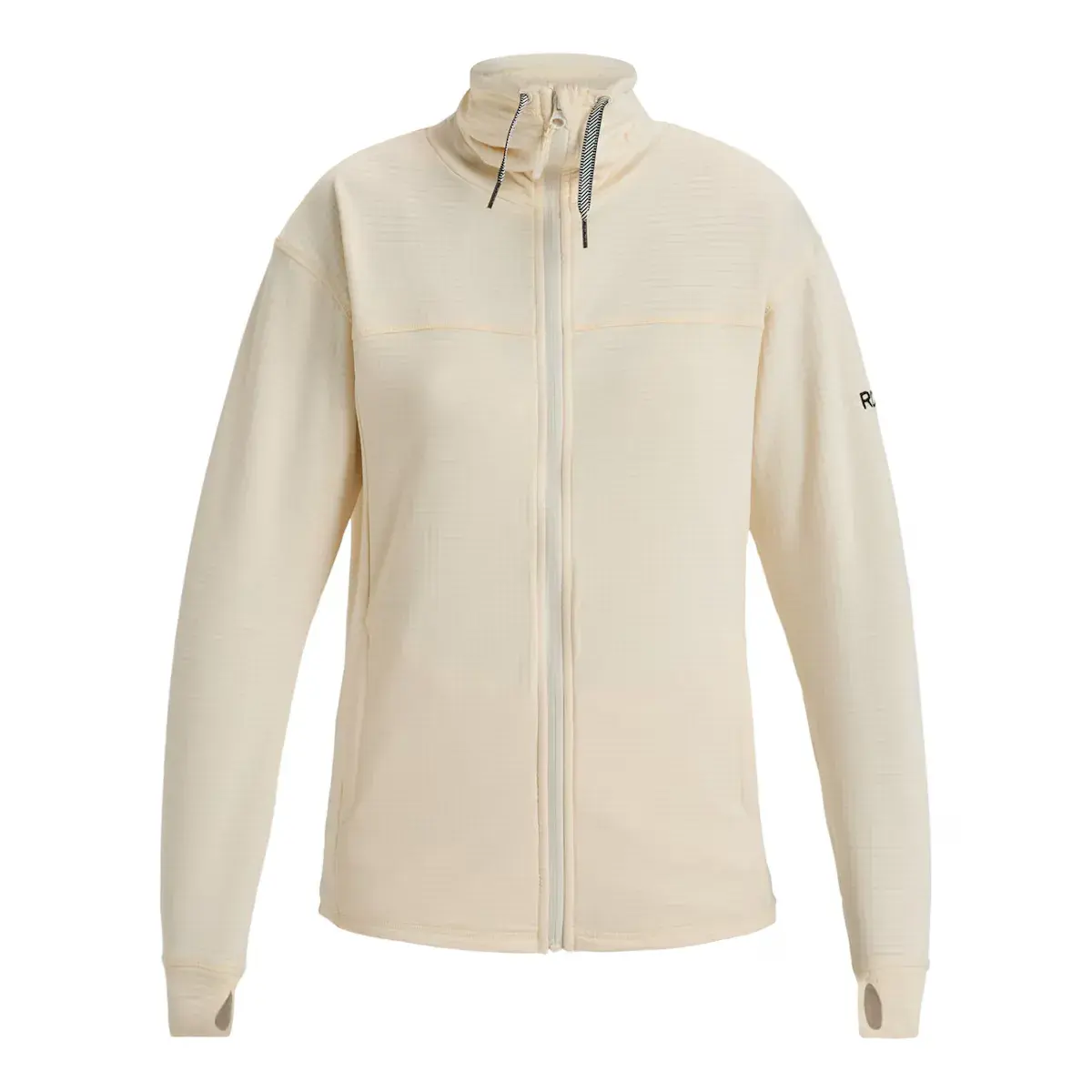 Женская толстовка на молнии. Особенности включают: Ткань: вафельная и матовая ткань из 95% переработанного полиэстера с 5% эластана. Технология: Внутренний термофлис WarmFlight сохраняет тепло тела и влагу. Воротник: высокий воротник. Рукава: Длинные рукава. Застежка: застежка на молнию. Карманы: карманы для рук и другие особенности: регулировка шнурка.